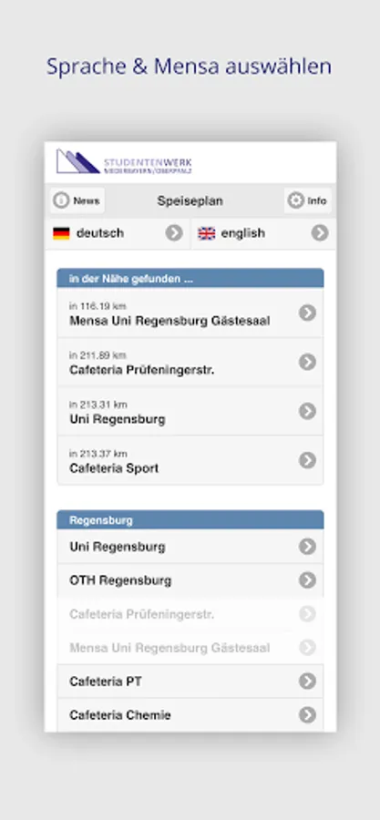 The official app of the Studentenwerk Niederbayern Oberpfalz.