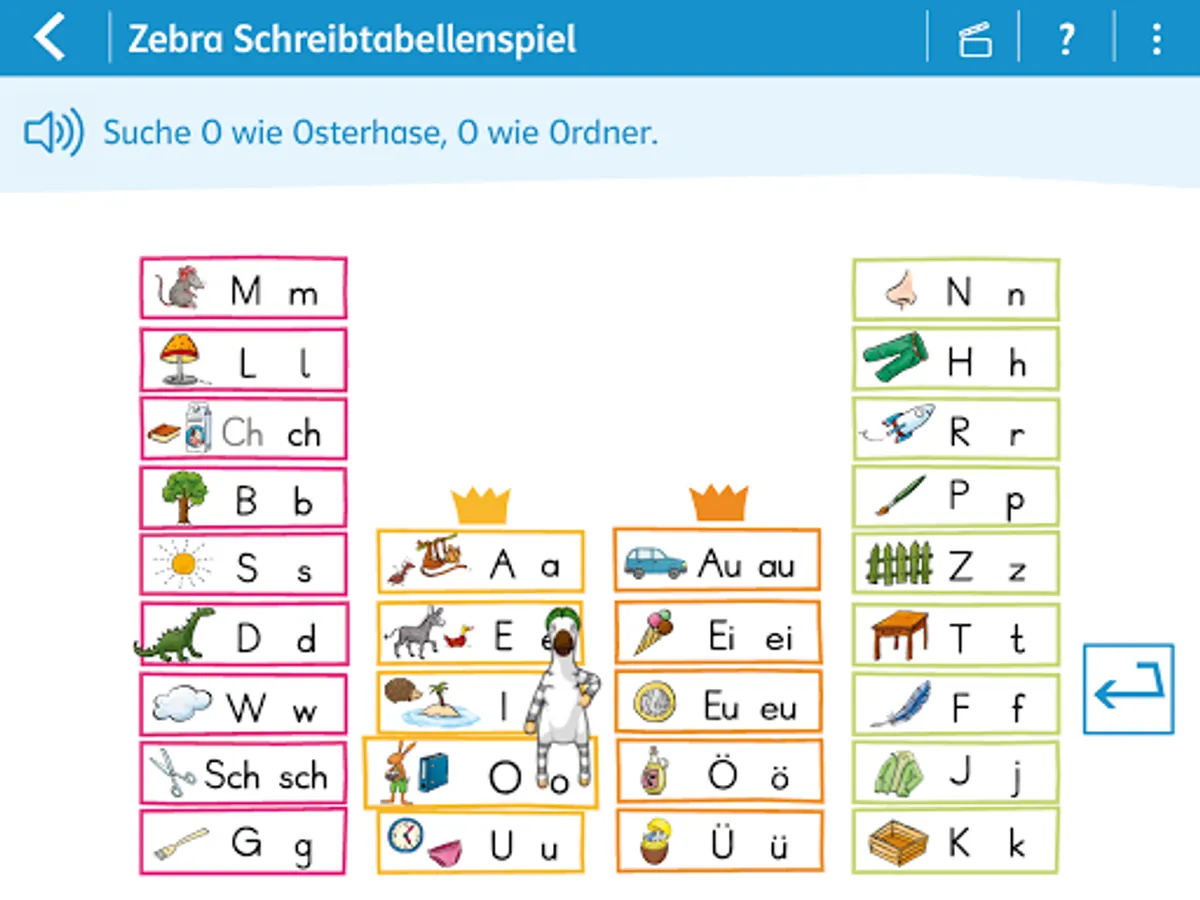 The new app ZEBRA WRITING TABLE provides exercises for the writing of phonetically words based on