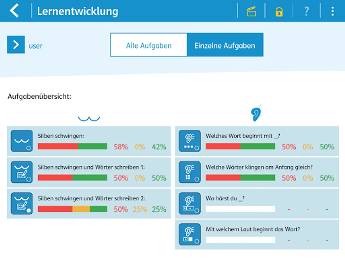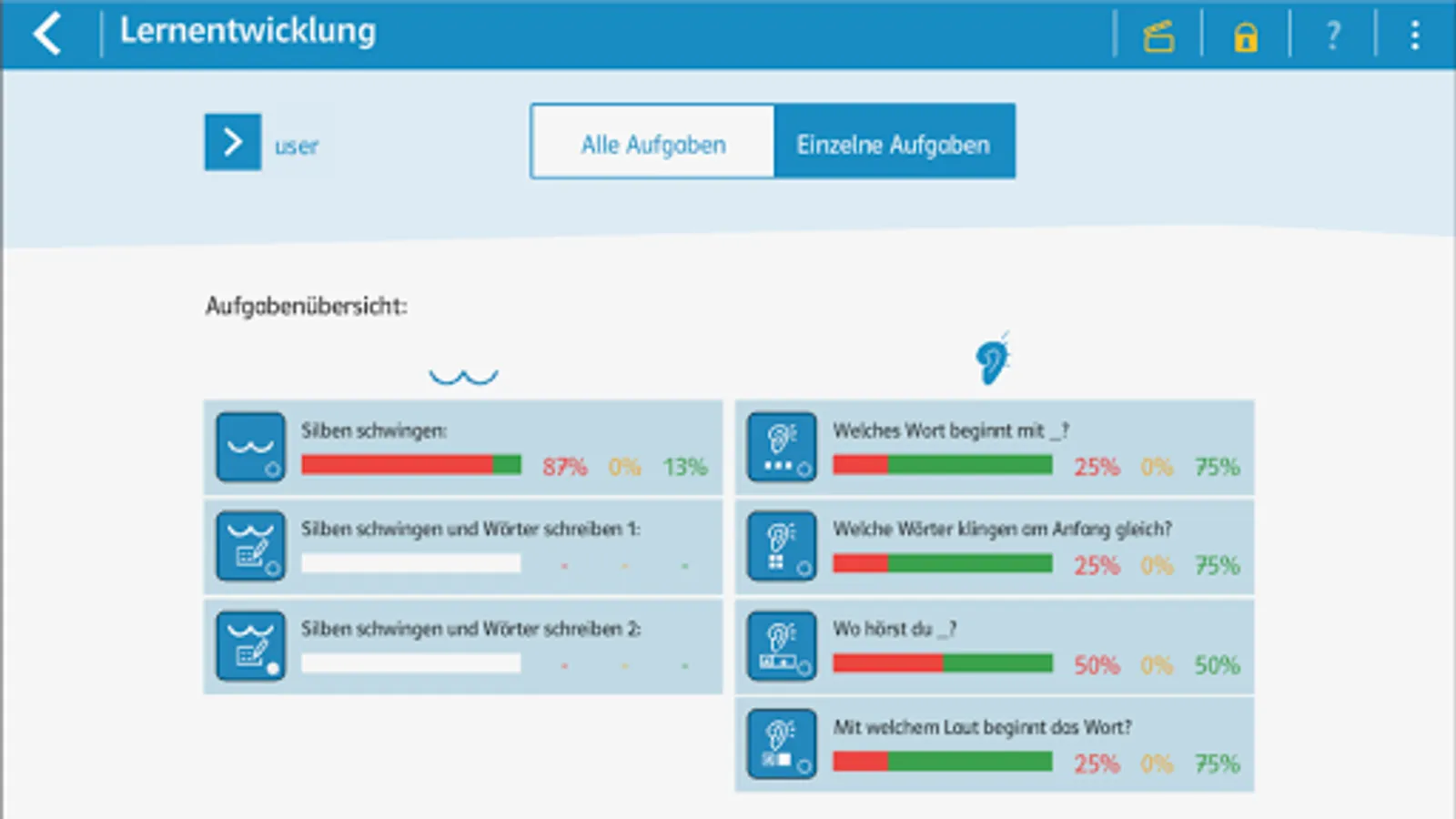 fundamental vocabulary. Basic phonetic-letter assignments are practiced. Wrong words are automatically