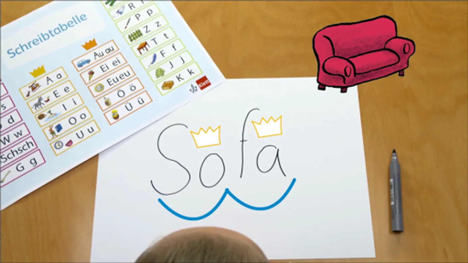 the children can compare and recognize mistakes. Basic orthographic awareness is practiced in a playful way.