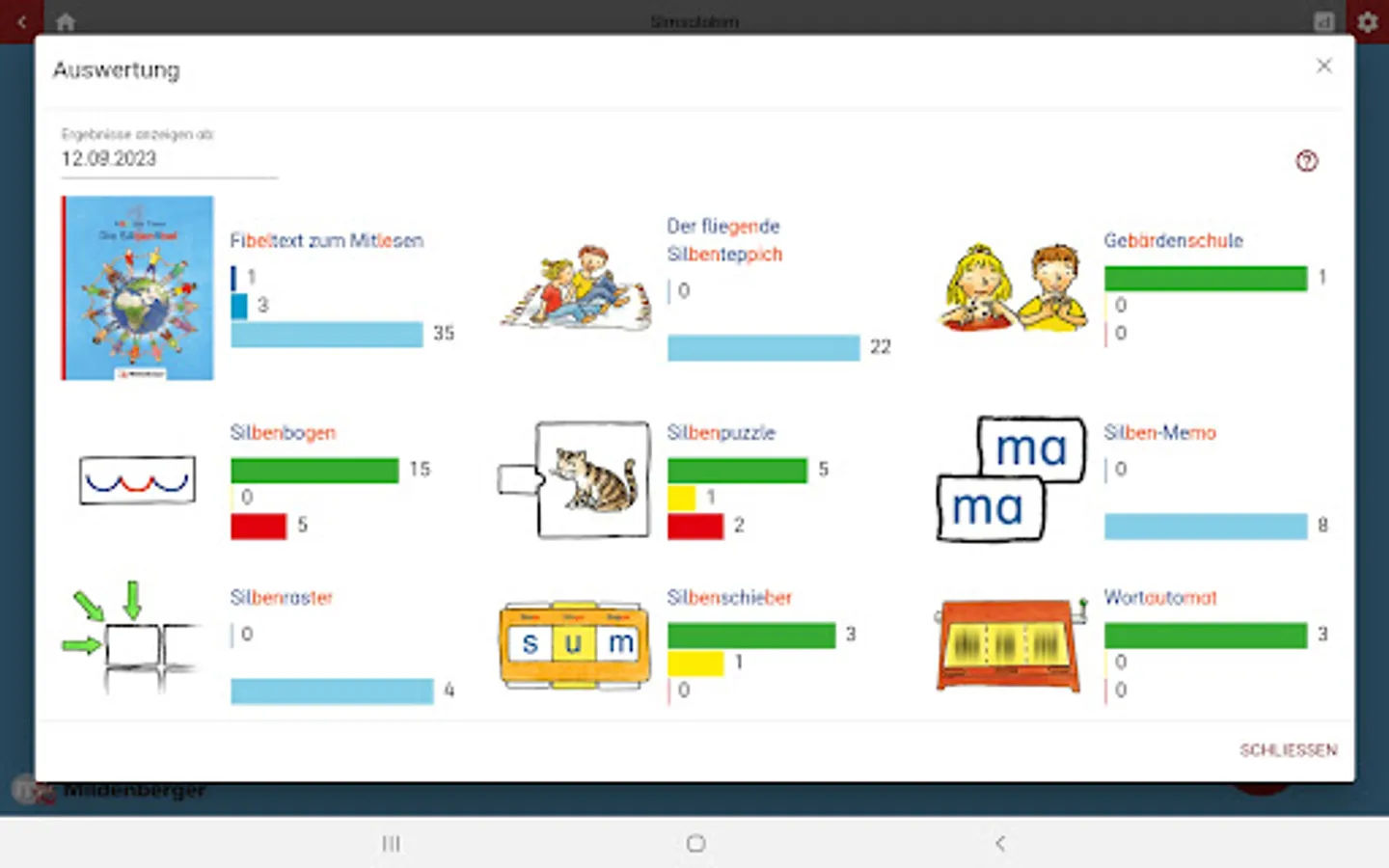 In addition to the reading texts, the app offers further exercises that cover the entire learning material of the first school year.