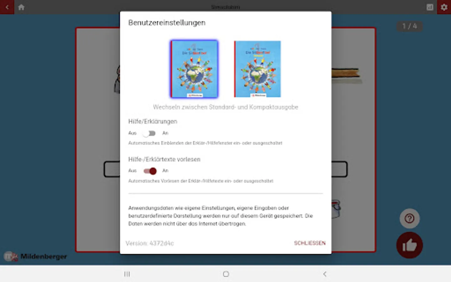The syllable method is a well-founded and proven concept: the colored hyphen separator helps all children learn to read right from the start. In the app, texts are therefore displayed in syllables: