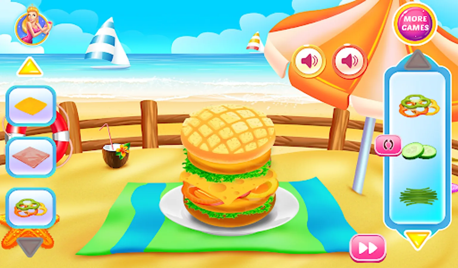 And today you have to prepare a lot of delicious dishes. Make burgers and grill slices and arrange them neatly on the bread.