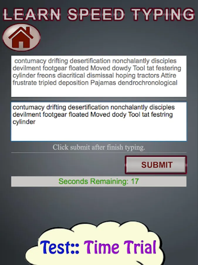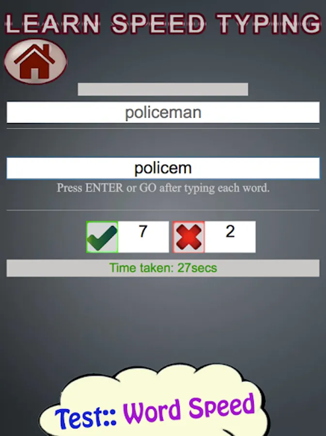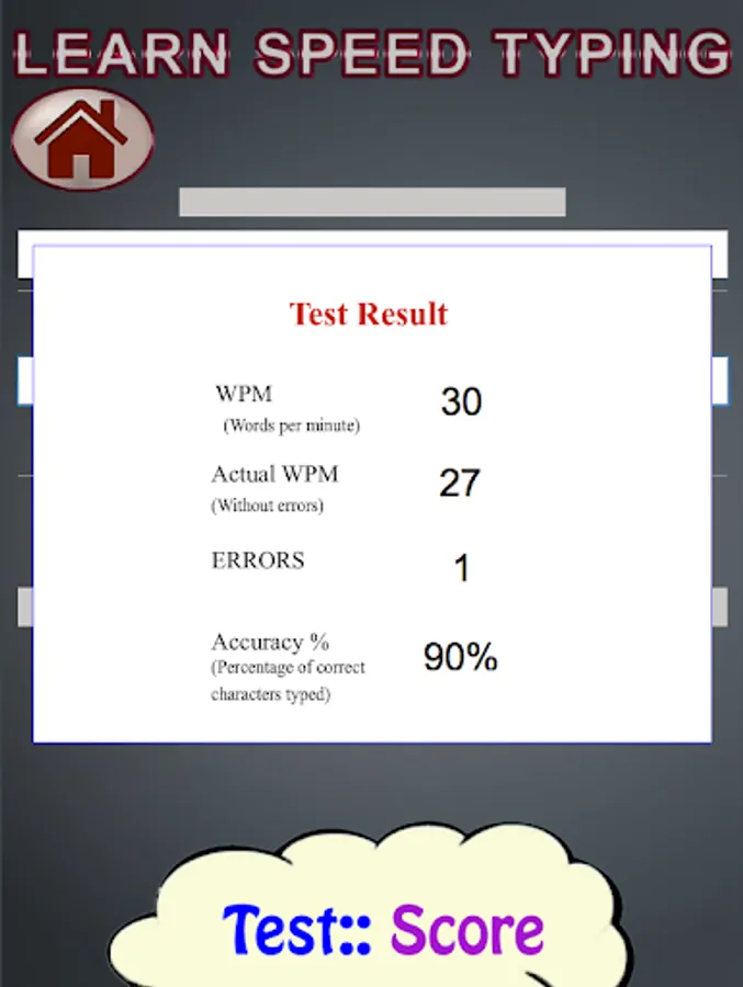 •Practice Mode and Test Mode to learn how to type faster, practice your touch typing skills, take typing speed test with this Speed Typing.