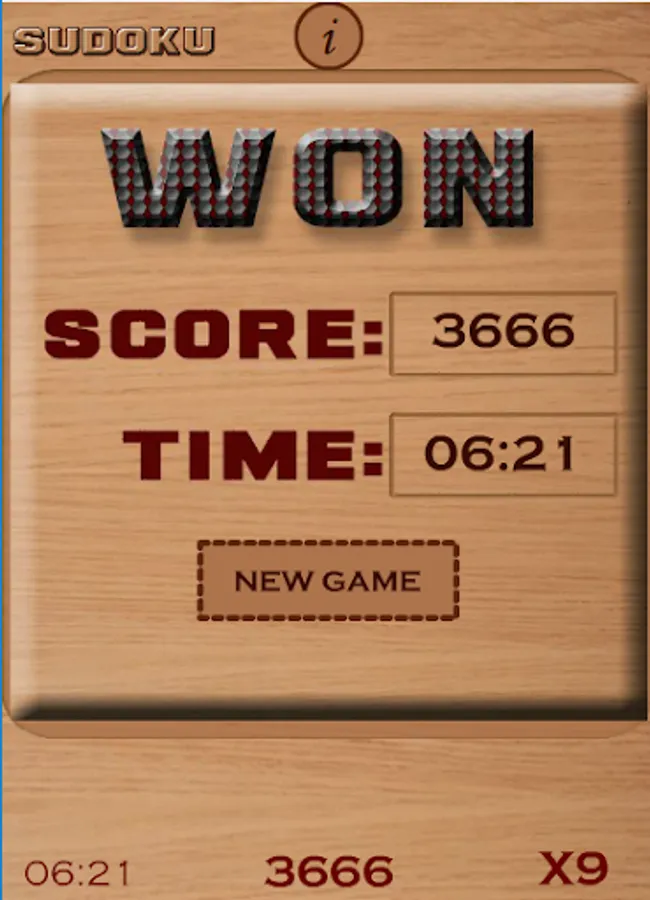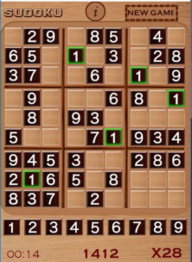 • Play on Easy, Medium, Hard and Super-Hard grids of your choice each time “New Game” is clicked.