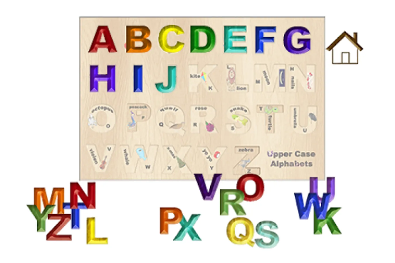 Capital letters puzzle includes a piece for each of the twenty-six letters in the alphabet. A colorful picture under each piece shows an image beginning with the same letter, helping to develop letter recognition and pre-reading skills! Also, encourages eye-hand, fine motor and visual perception skills.