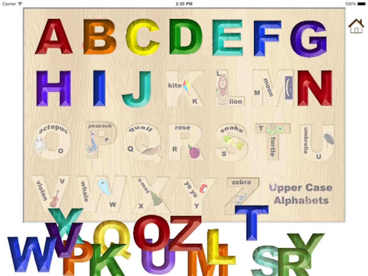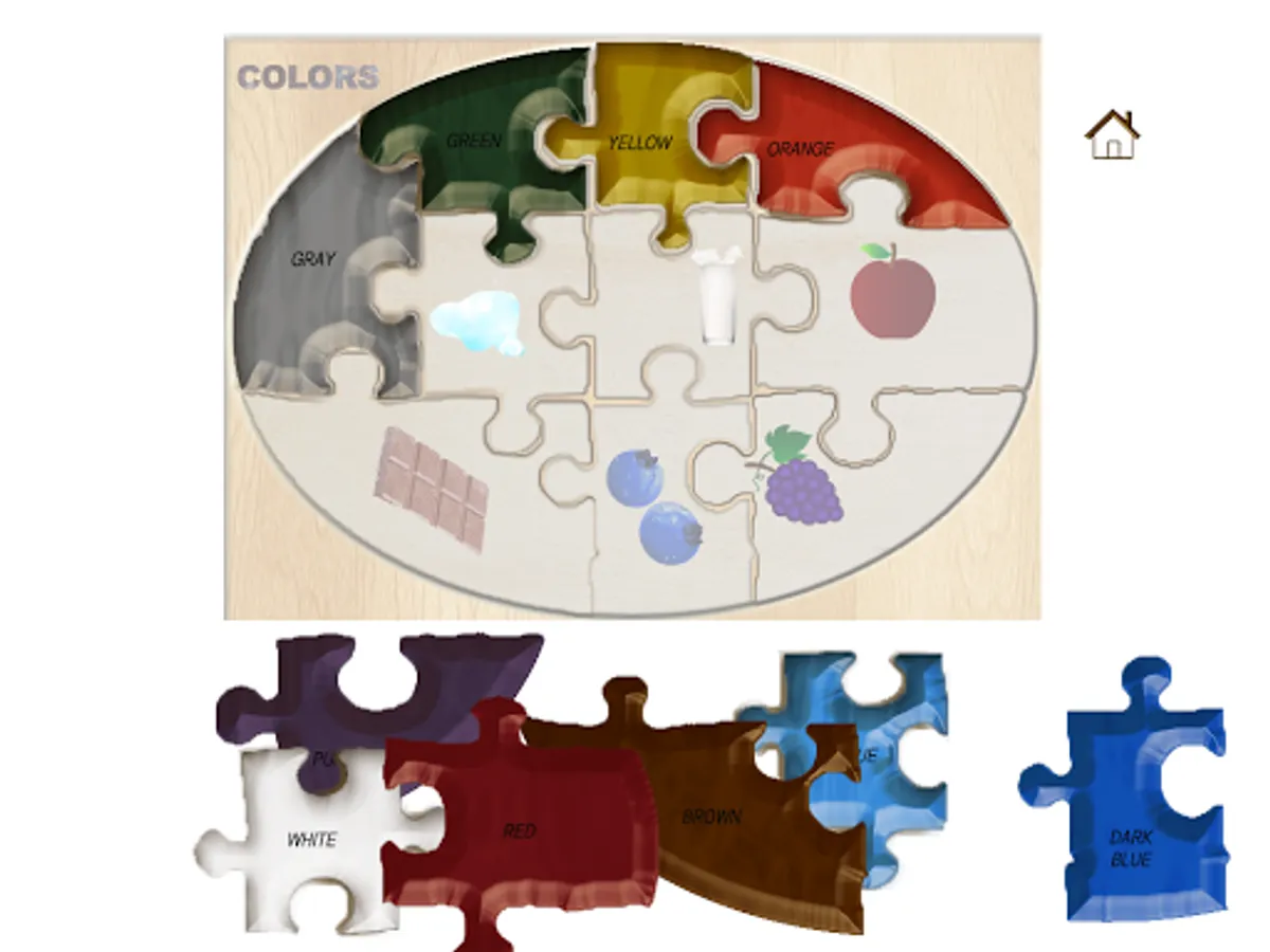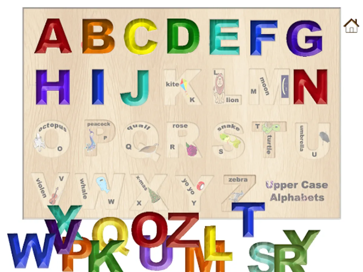 Each puzzle piece (letter, number, shape, or any) is 3D designed. As each 3D piece is snapped in, multimedia audio plays out saying name of puzzle piece.