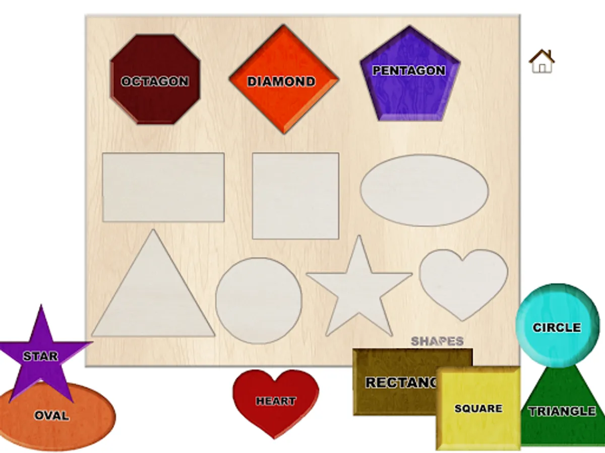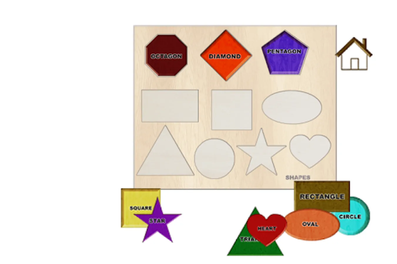 This shapes puzzle will encourage children to develop shape recognition skills. Shapes Puzzle educates and entertains your little one with easy-to-move shapes that snap into place on top of silhouette puzzles. Shapes Puzzle encourages cognitive thinking and fine motor skills, and exposes young minds.