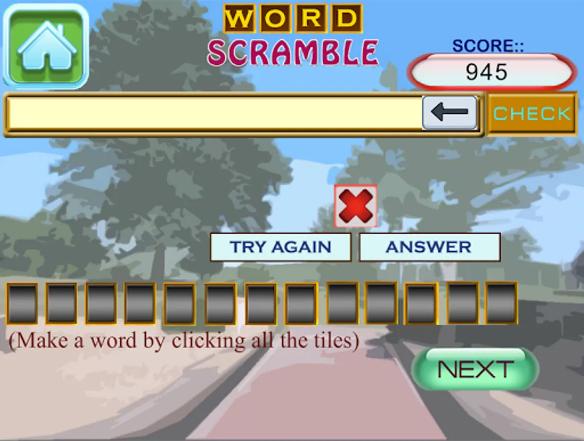 Word Scramble is a very fun and exciting word puzzle game, it makes you keep playing for hours. Get ready to exercise your word brain, expand your Vocabulary and Improve your Concentration Skills.