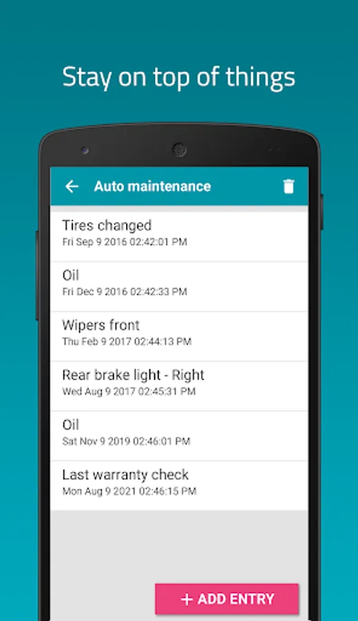 Record-keeping is very simple - all you need is to input a date and the entry text.