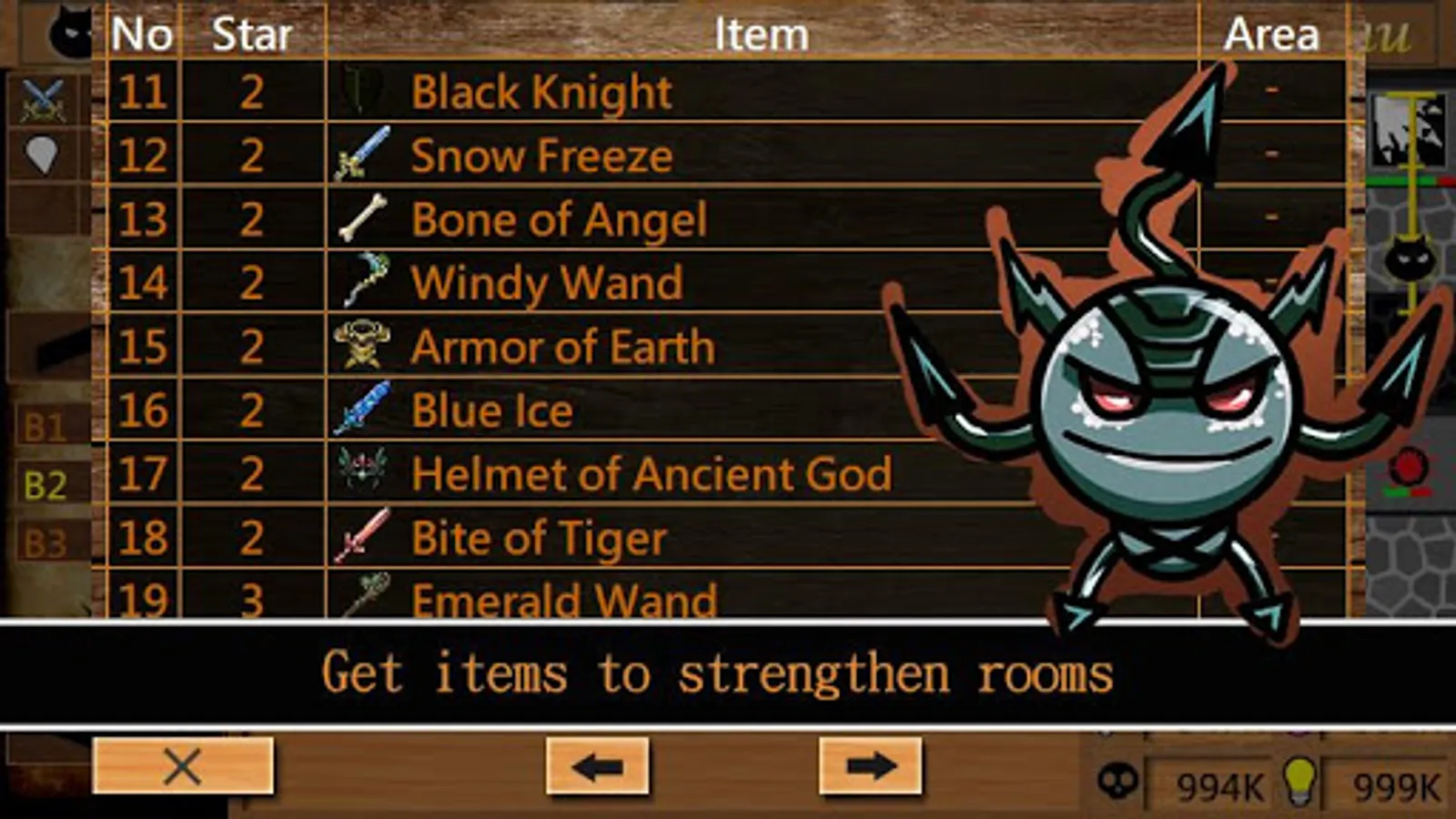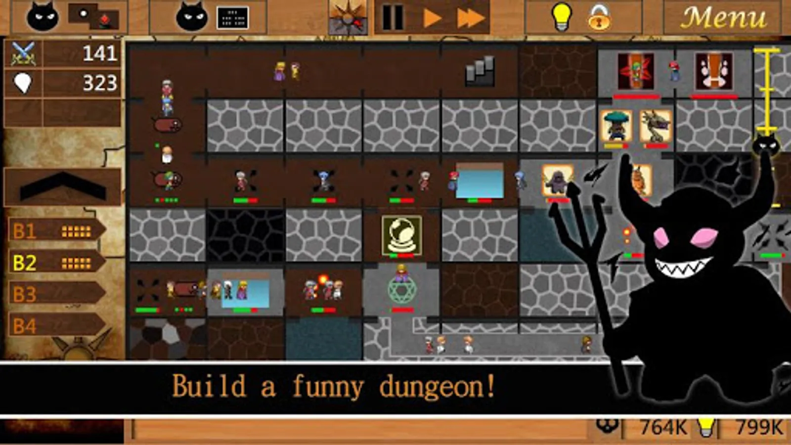Adventurers have different occupations,they will be stronger with the evaluation of Dungeon. Adventurers also have different abilities, such as thieves can destroy the traps.Adventurers will also carry a item, you will get the item if they die. Besides,these items have different functions,remember to place it in the room.