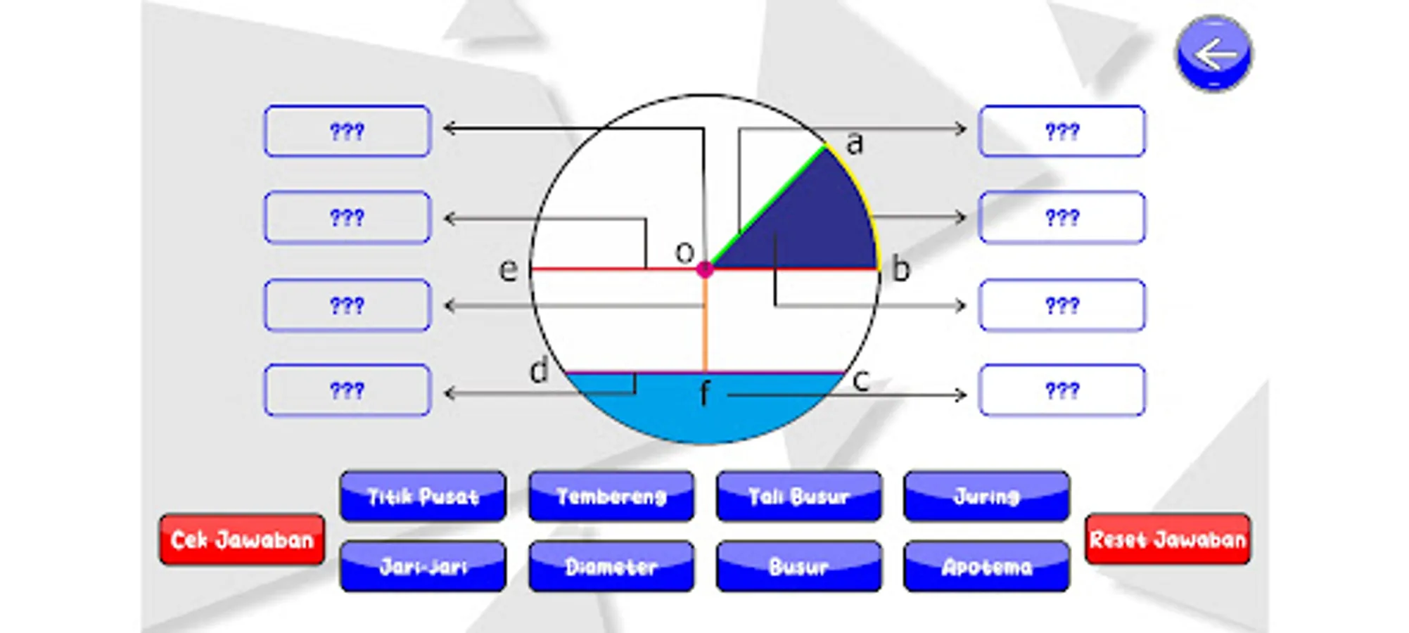 This application is an interactive learning medium for circle material for grade 8 junior high school. This application contains contextual circle material which is complemented by games and evaluation questions to measure students' understanding of the material.