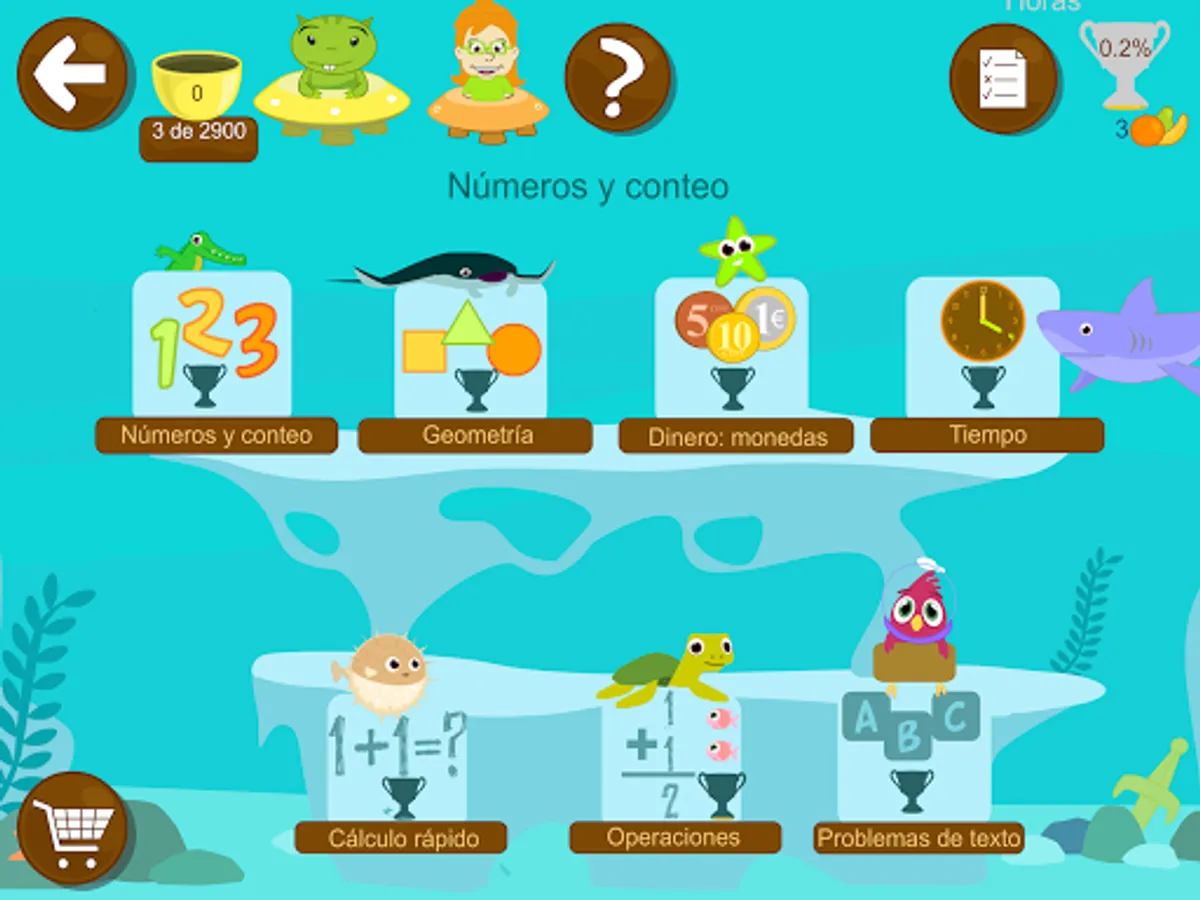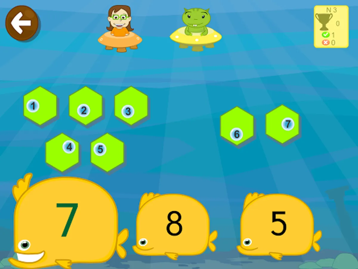The first part of this underwater adventure where your little one will learn or review math skills while playing with Grin and his underwater friends for boys and girls from 4 to 6 years old with more than 1500 different exercises.