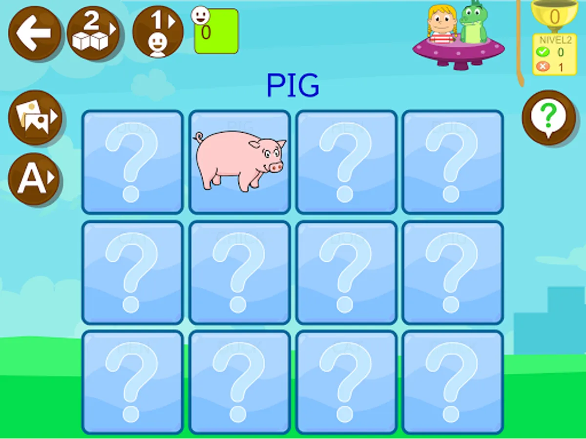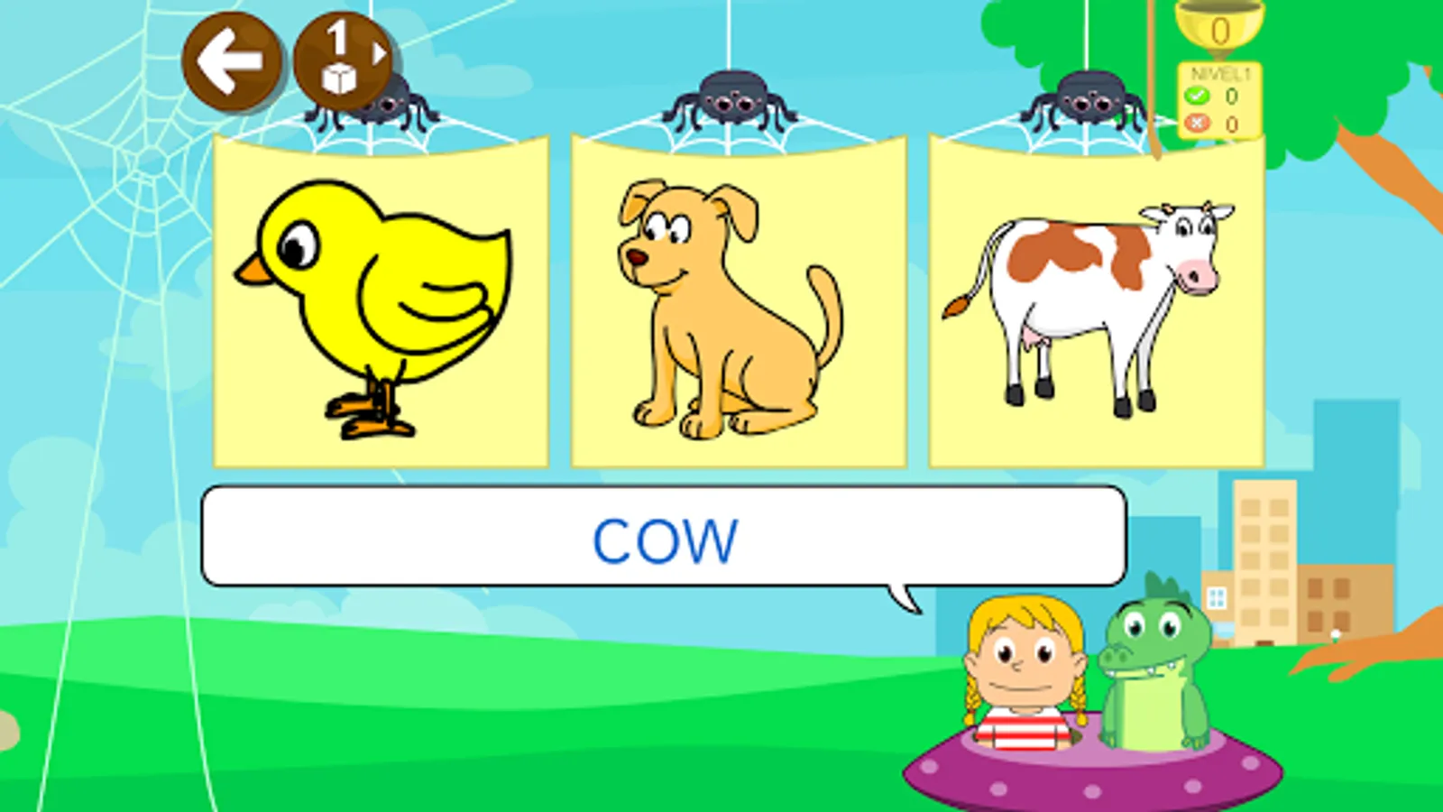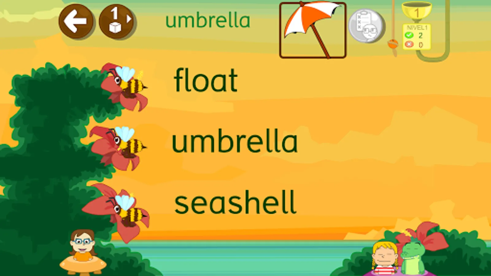 He develops his vocabulary and his hearing ability playing with the images of the scene: we give them color and see how each one is written while we listen to its pronunciation in English with Cuca: numbers, colors, toys, the house, food, body parts, etc. .