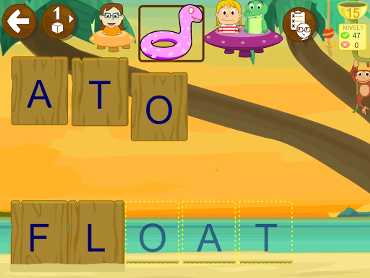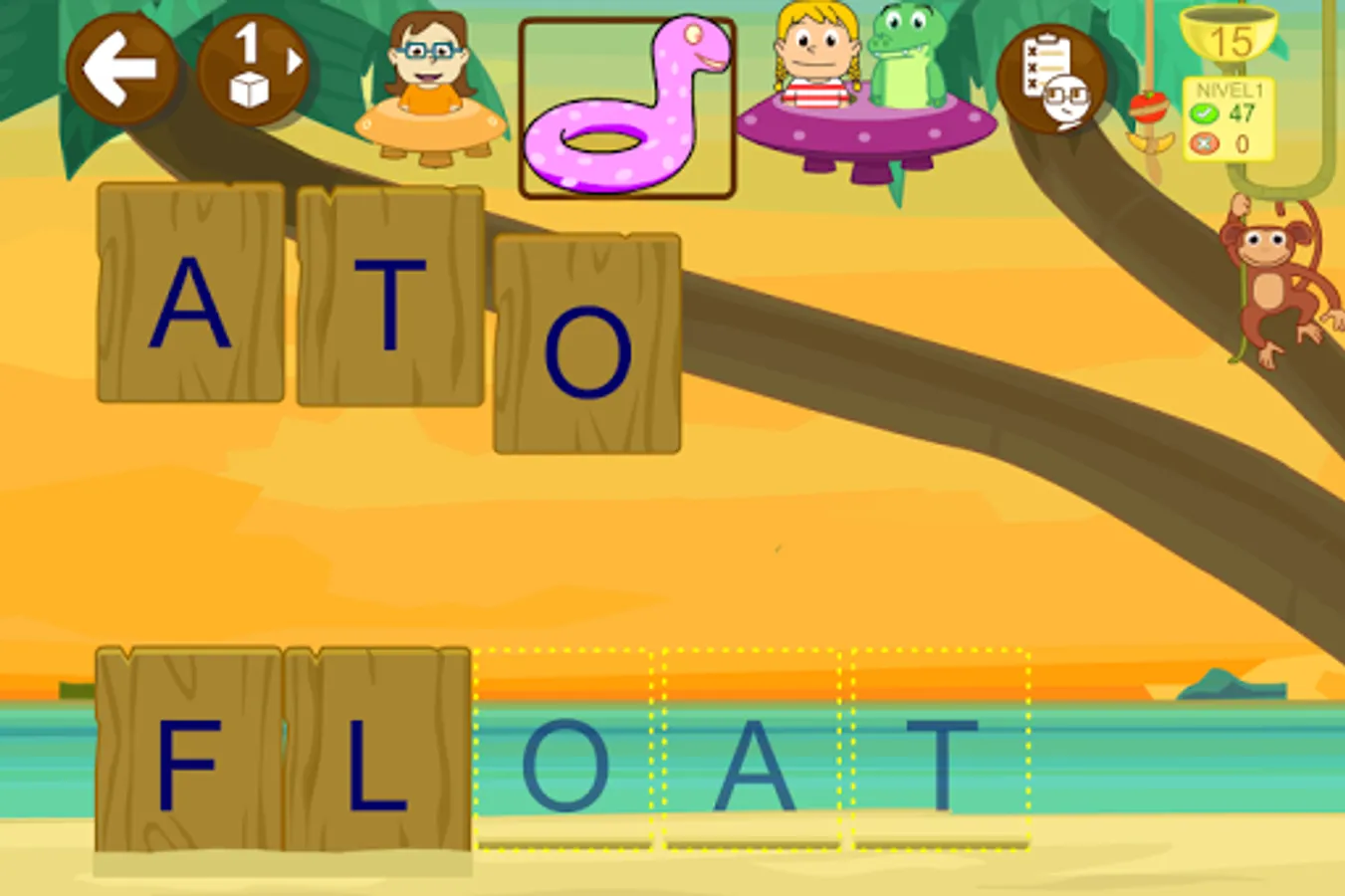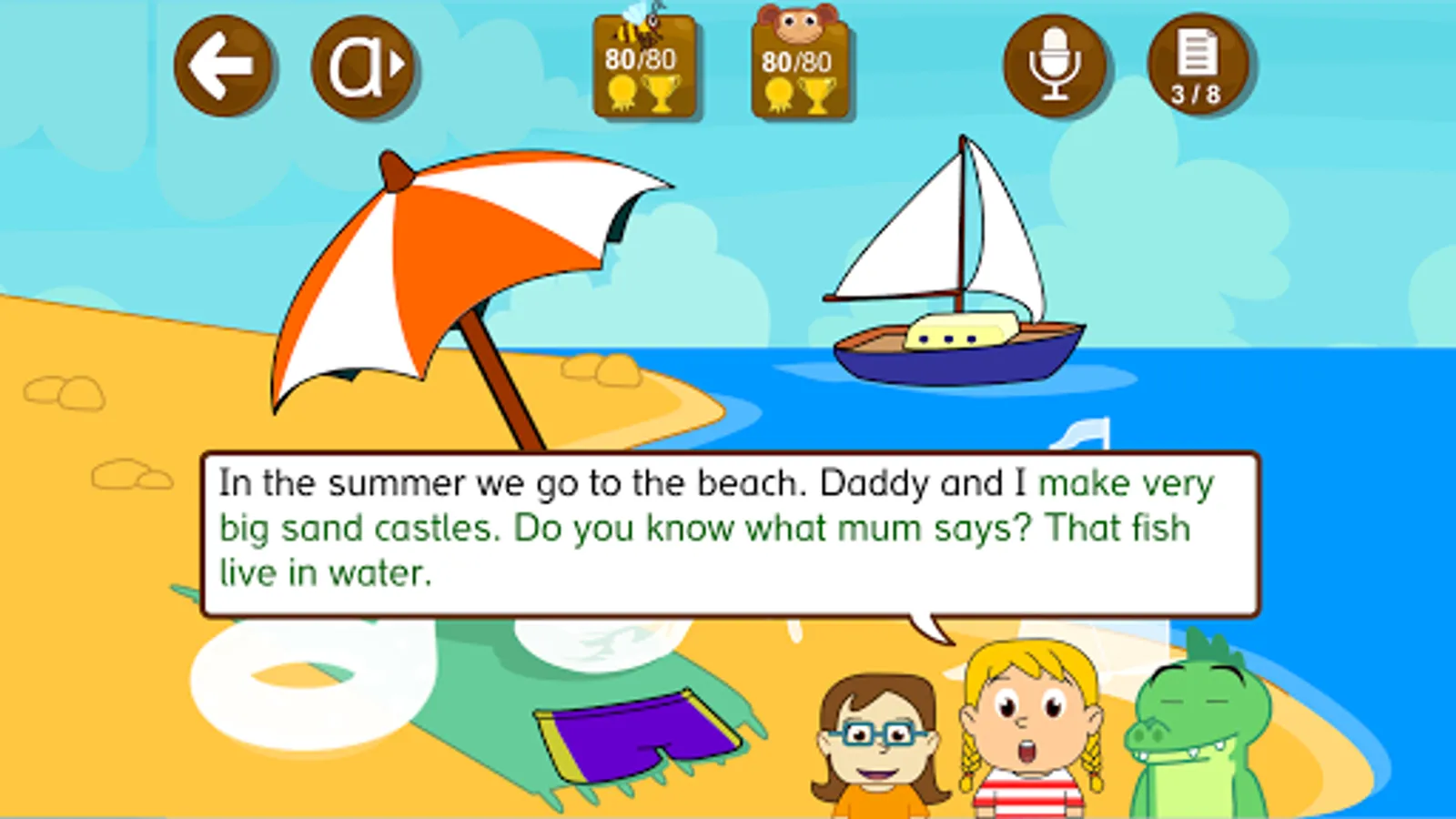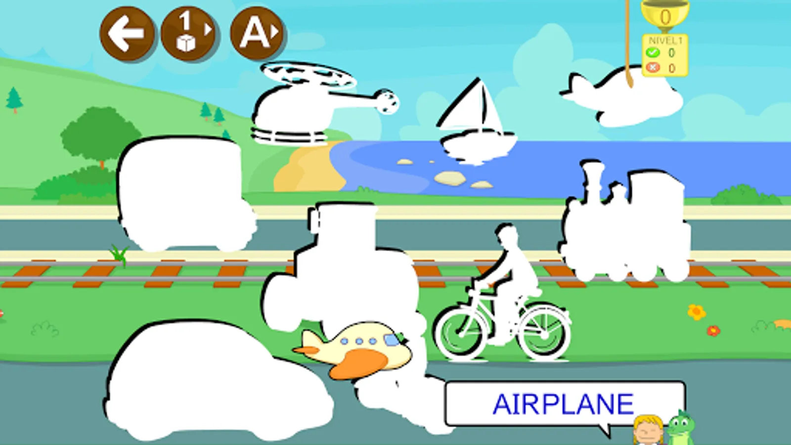 He develops his vocabulary and his hearing ability playing with the images of the scene: we give them color and see how each one is written while we listen to its pronunciation in English with Cuca: numbers, colors, toys, the house, food, body parts, etc. .