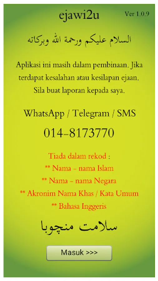 Aplikasi ini masih dalam pembinaan. Jika terdapat kesalahan atau kesilapan ejaan. Sila buat aduan/laporan kepada saya.