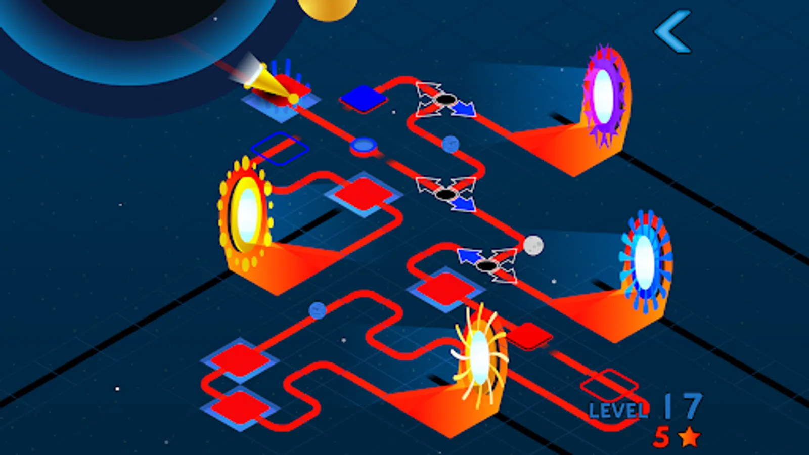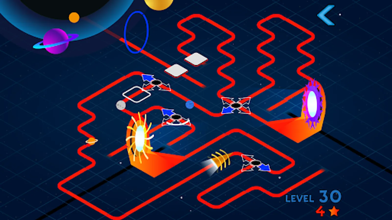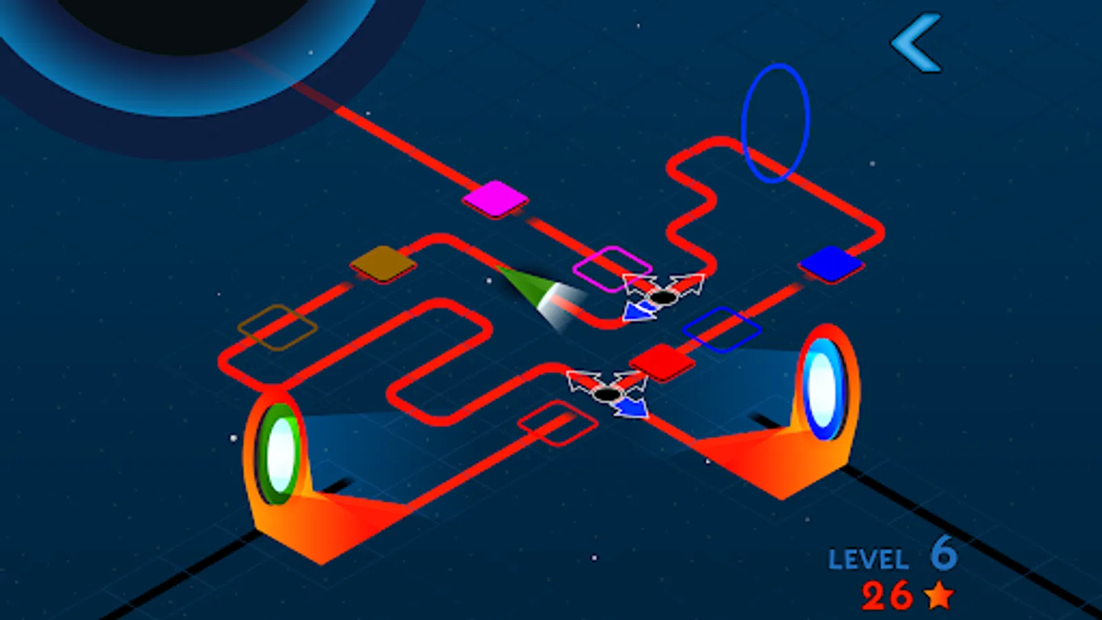 The arcade videogame and a bit tangled brain teaser. Portals, stars, space and the void. You are a traveler through the galactic star route. Can you track the way of your spaceship through the dangerous obstacles in the blank space? What are you faster than? Light? Sound? Turtle? Good luck on your journey.
