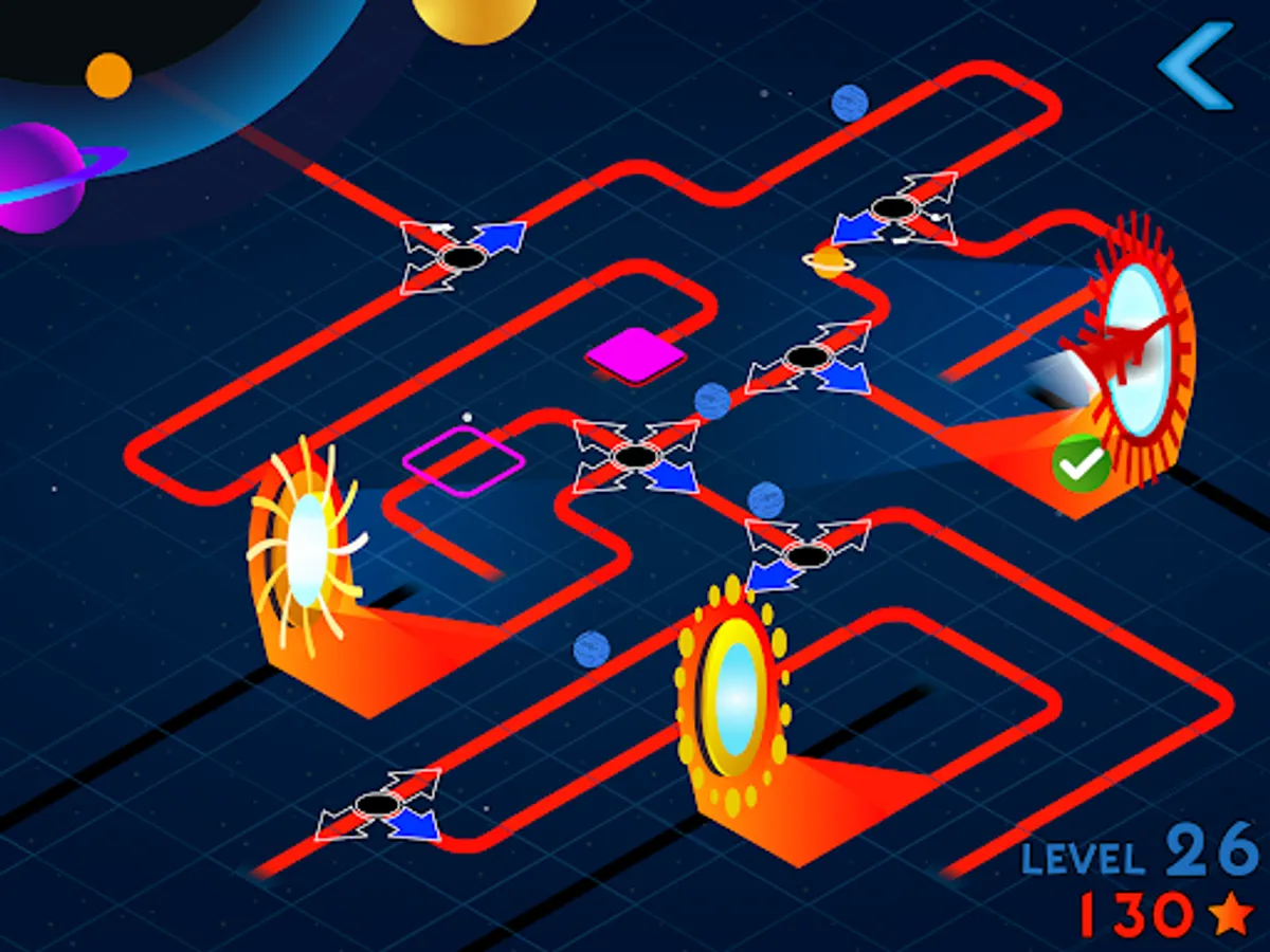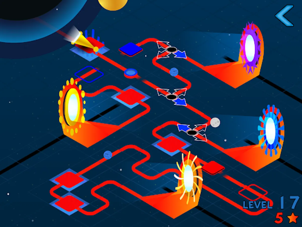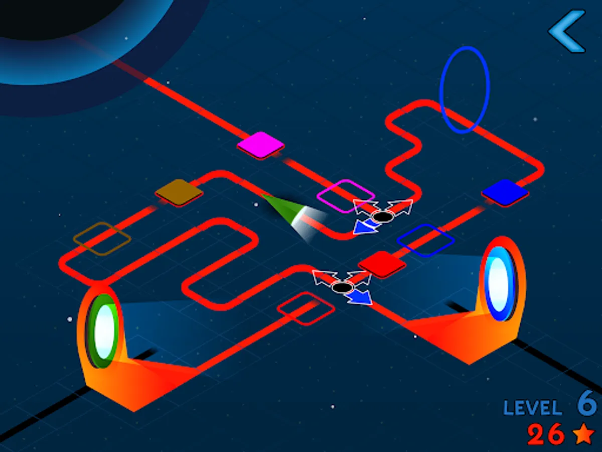 The arcade videogame and a bit tangled brain teaser. Portals, stars, space and the void. You are a traveler through the galactic star route. Can you track the way of your spaceship through the dangerous obstacles in the blank space? What are you faster than? Light? Sound? Turtle? Good luck on your journey.
