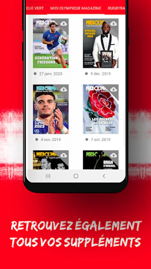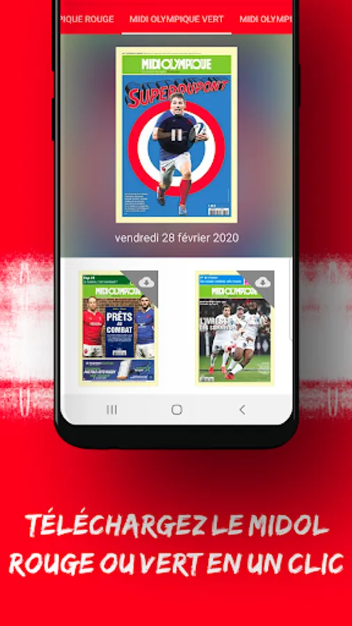 Find the digital version of the Midi Olympique Rouge and Midi Olympique Vert newspapers from 7:30 p.m. the day before the paper journal is published.