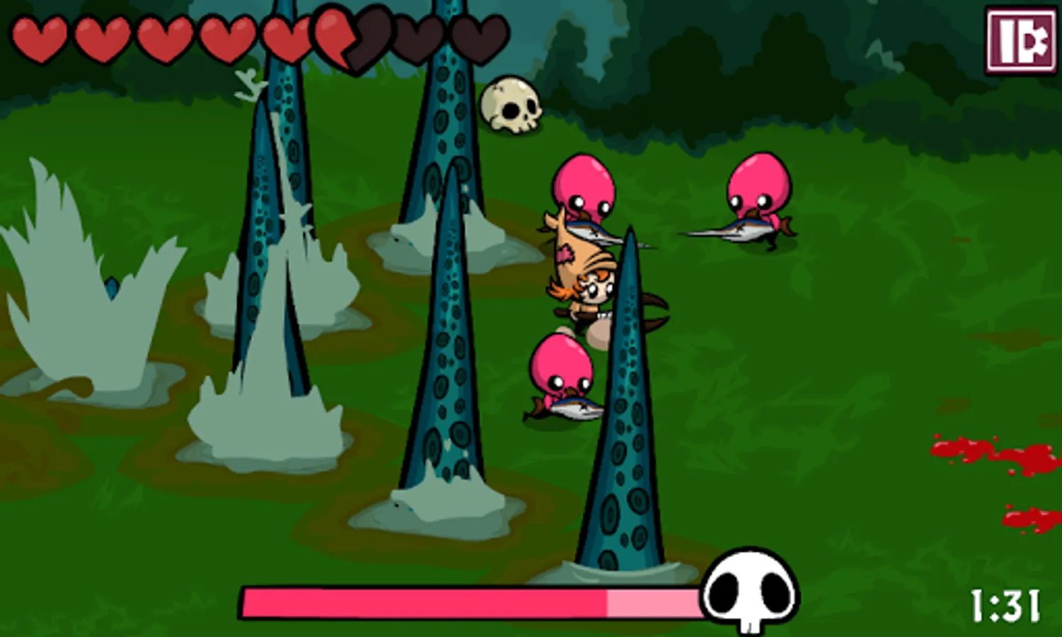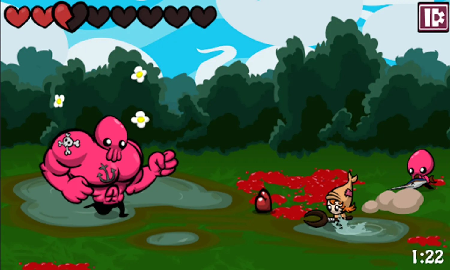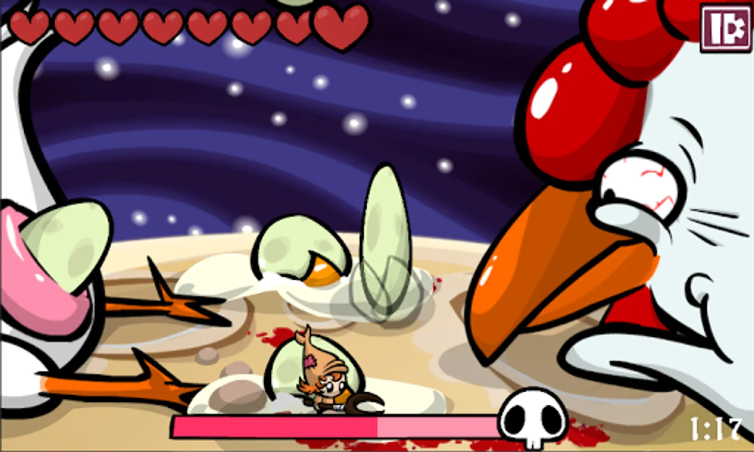 The insidious anthropomorphic octopuses have abducted your chickens. Do you have what it takes to take them back and end the tentacled menace once and for all?