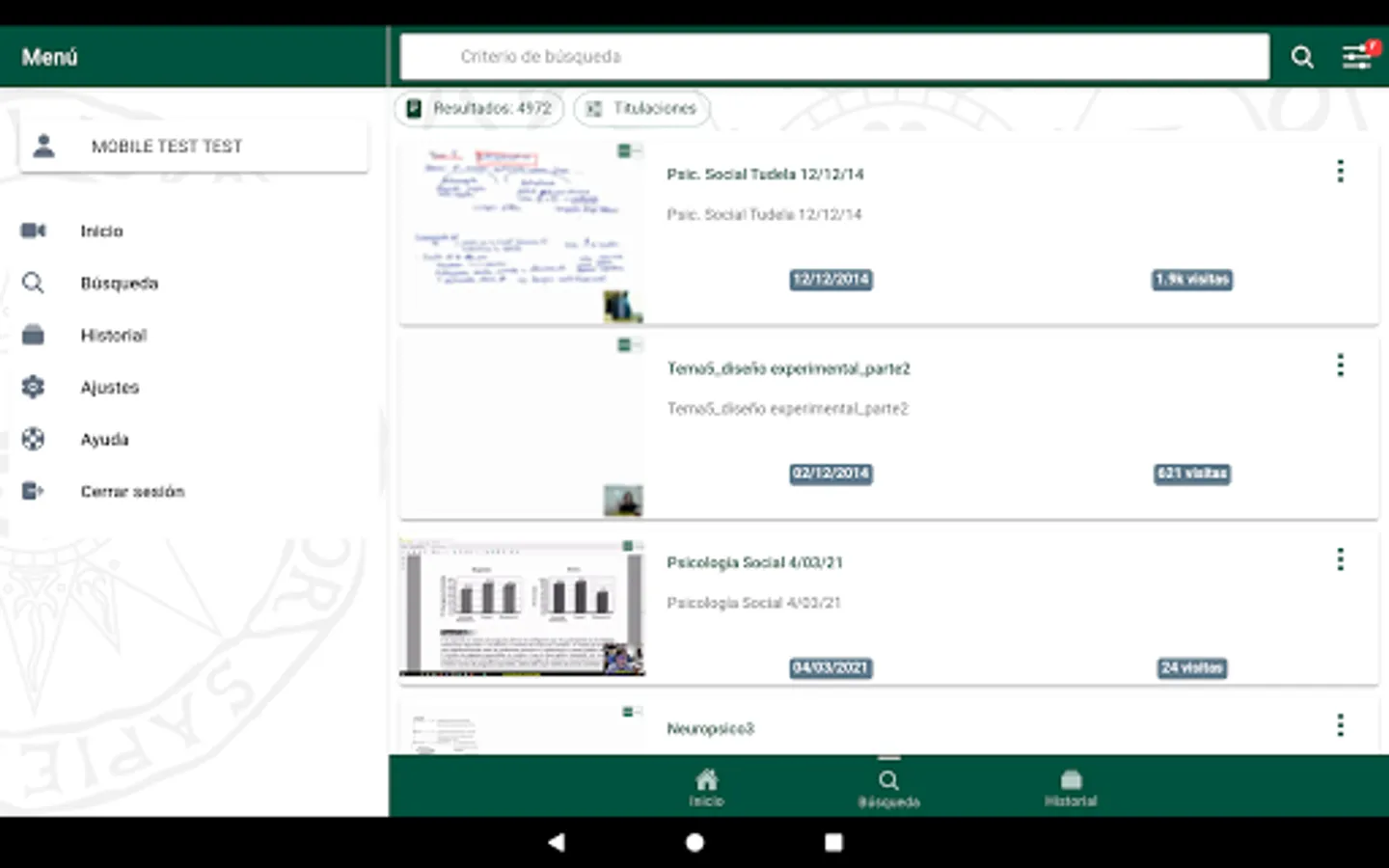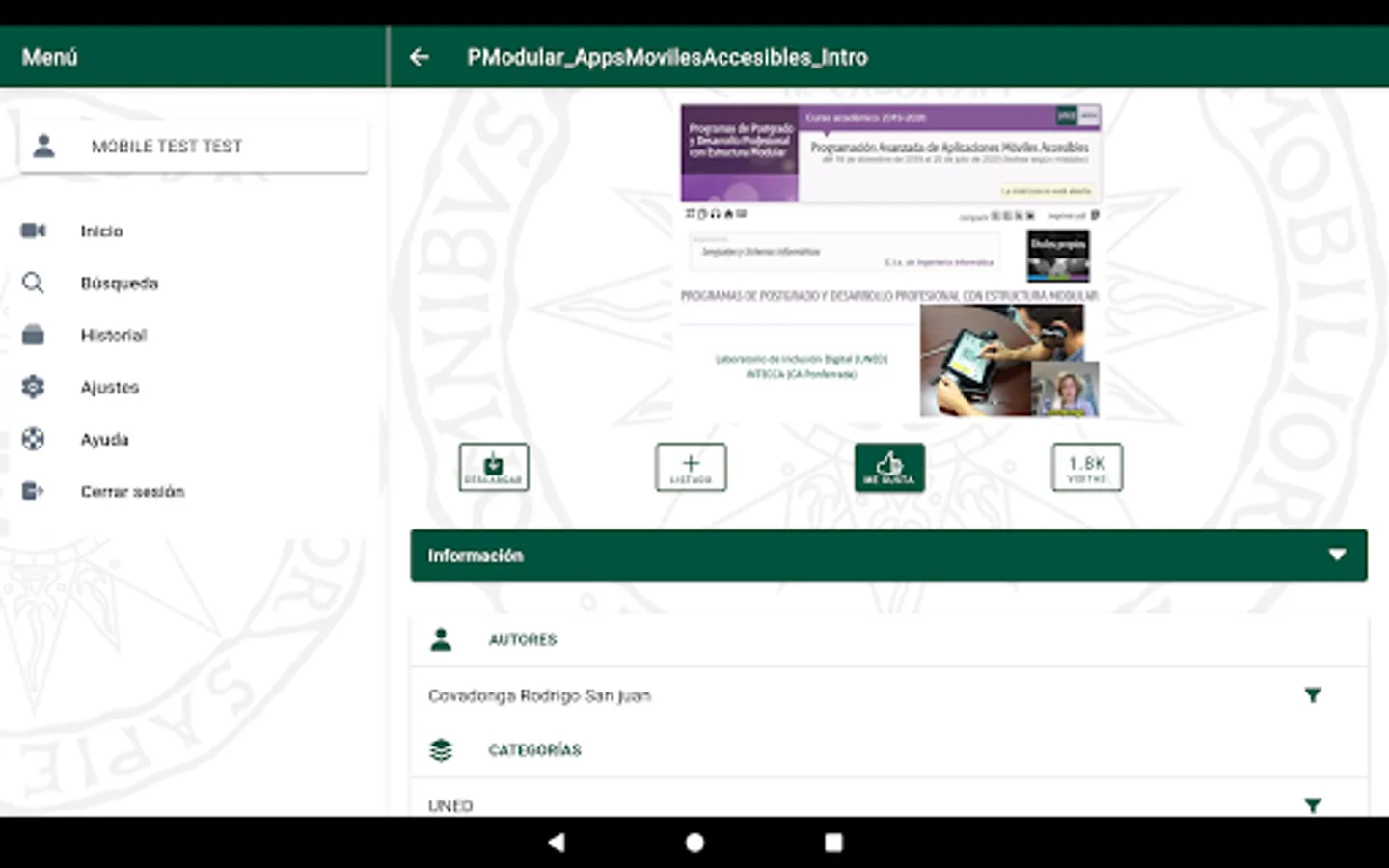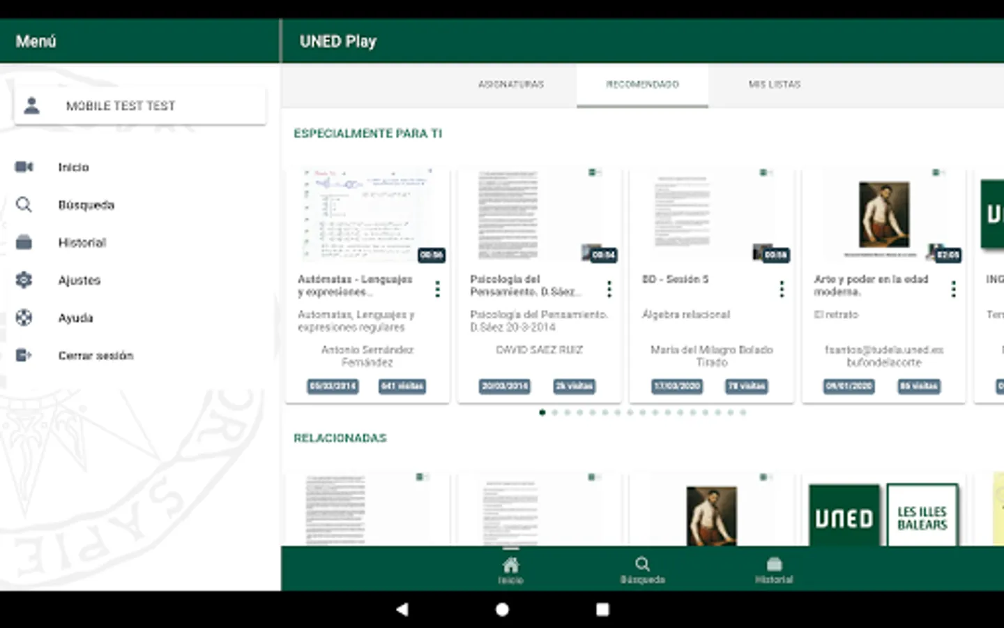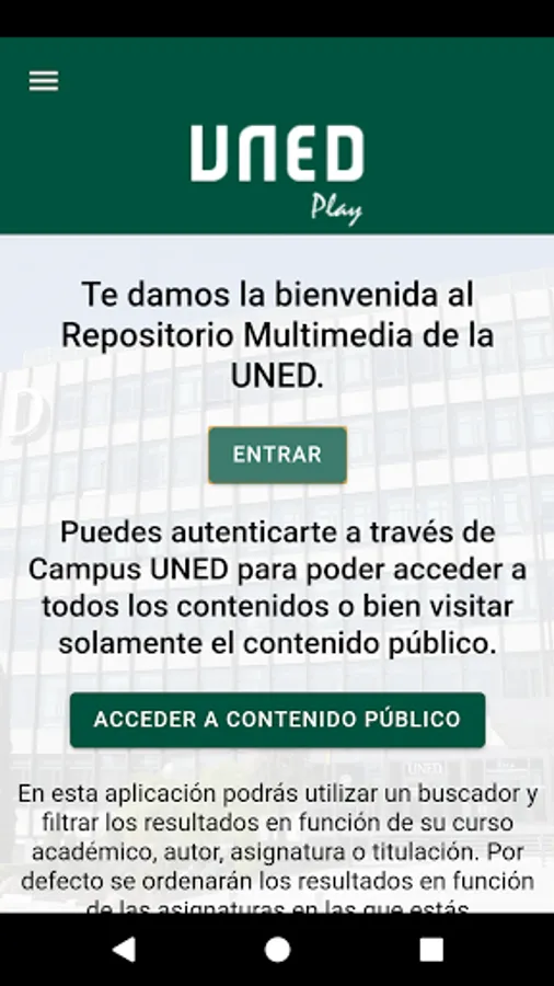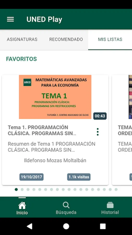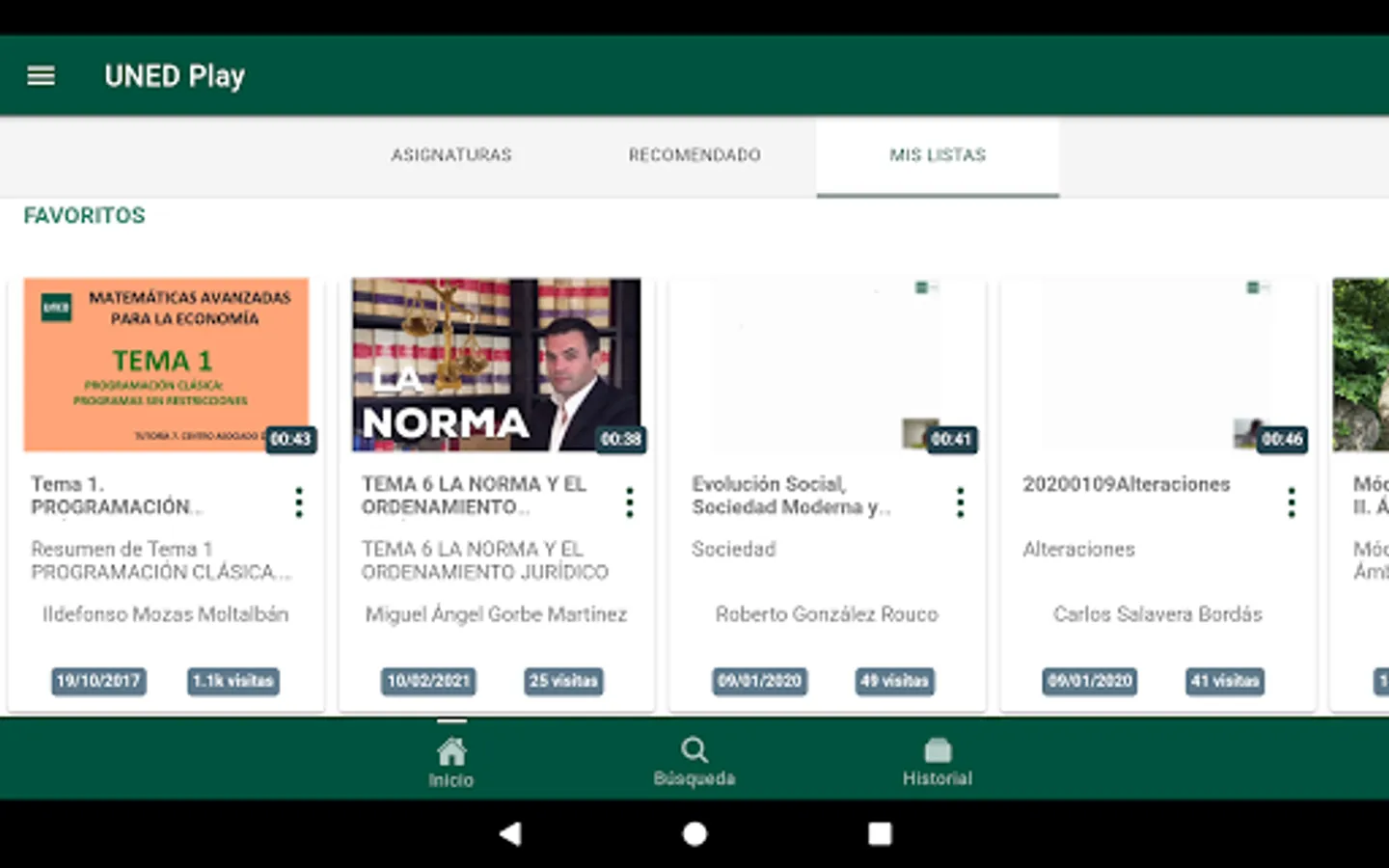Official application of the National University of Distance Education (UNED) for the reproduction of multimedia resources from the repositories. These audiovisual resources are the sessions published on the INTECCA AVIP Portal and the videos on Canal UNED, which include events, video classes, tutorials from Associated Centers, documentaries, etc., which are held daily at UNED. This new search engine allows you to find the resources belonging to the subjects in which you are enrolled and also facilitates the filtering of results based on authors, degrees and courses, among others.