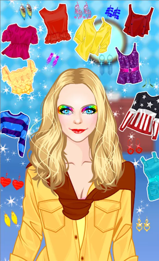 The second level will bring you in a world of colors. Tons of colors for lipstick and eyeshadows are available for you and you must pick what you like most. Use red or yellow, blue or green, combine them and make a real rainbow if you want. Try all you believe that will be nice for the pretty doll. The lipstick will complete this nice makeup and be sure that the color of lips will match with the color of makeup. To complete this fabulous look, choose elegant dresses and beautiful jewerly.