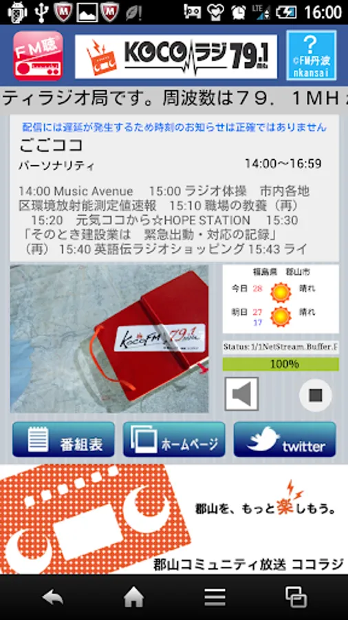 In addition, the program name of the program being broadcast not only broadcast audio, program content, website, twitter, you can see, such as local weather forecasts.