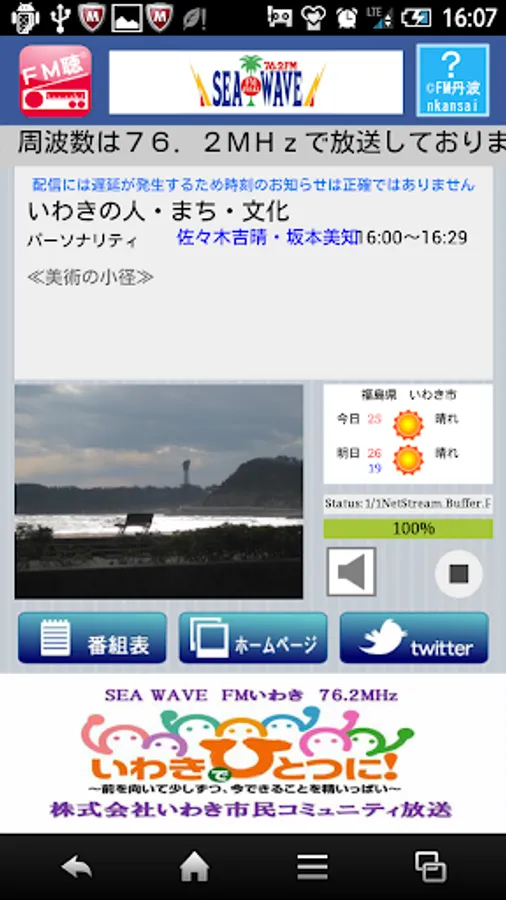 In addition, the program name of the program being broadcast not only broadcast audio, program content, website, twitter, you can see, such as local weather forecasts.