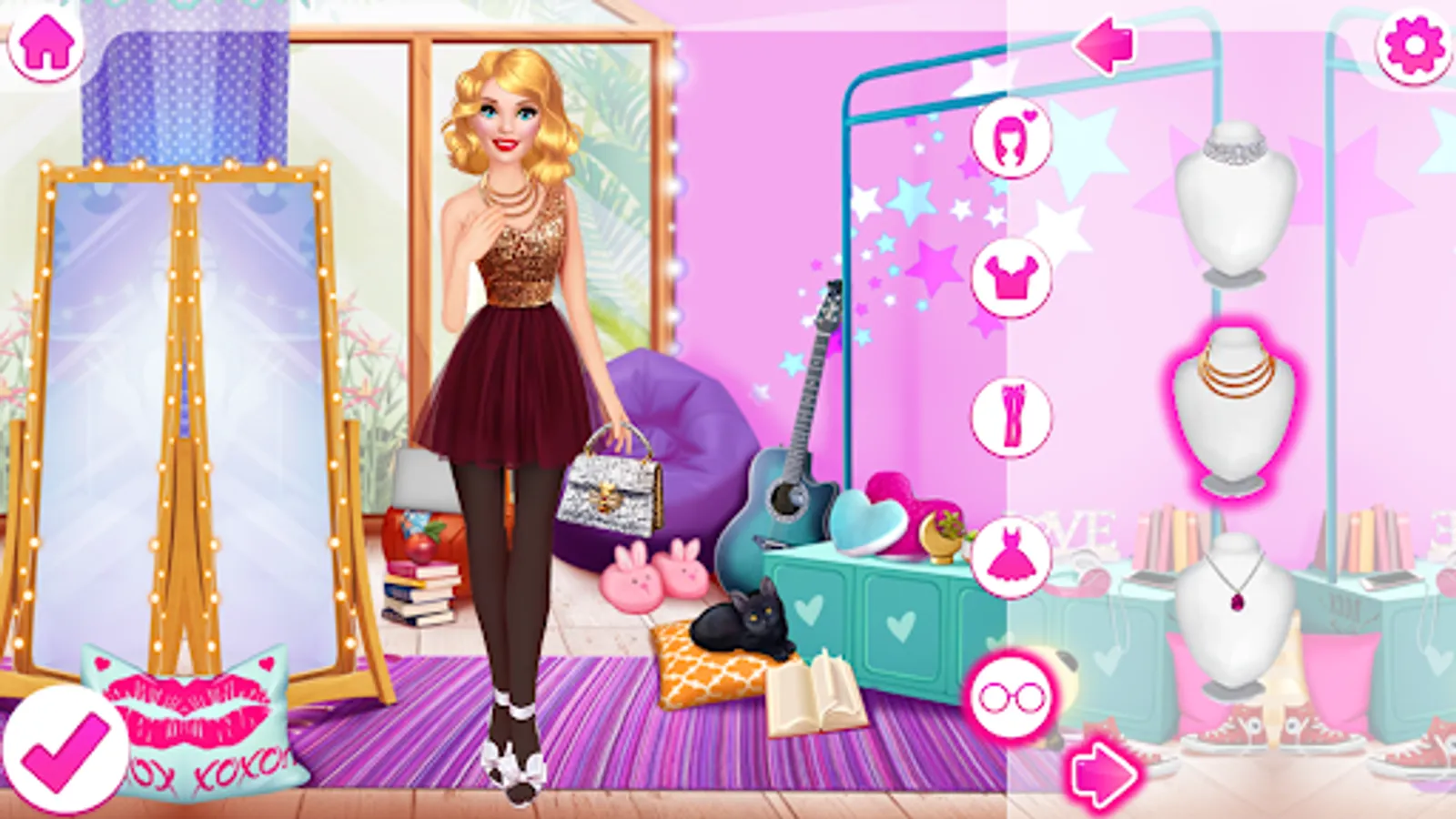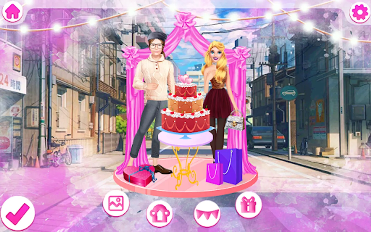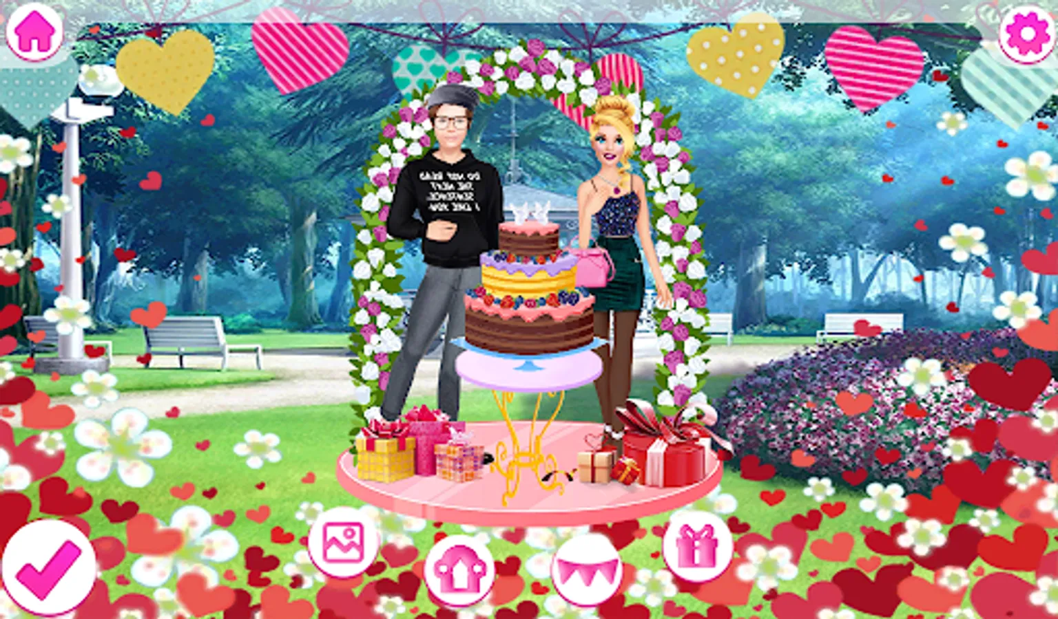 Stunning wedding dresses are waiting for you in the dress-up level. Complete a wedding look with jewelry and an elegant handbag. A bouquet of flowers is essential for the bride. Do not forget about the veil, it is no less important!