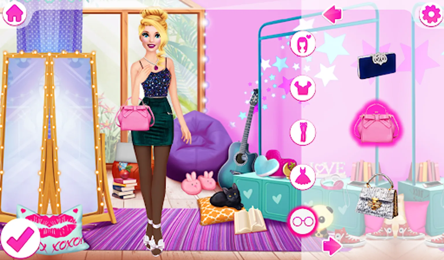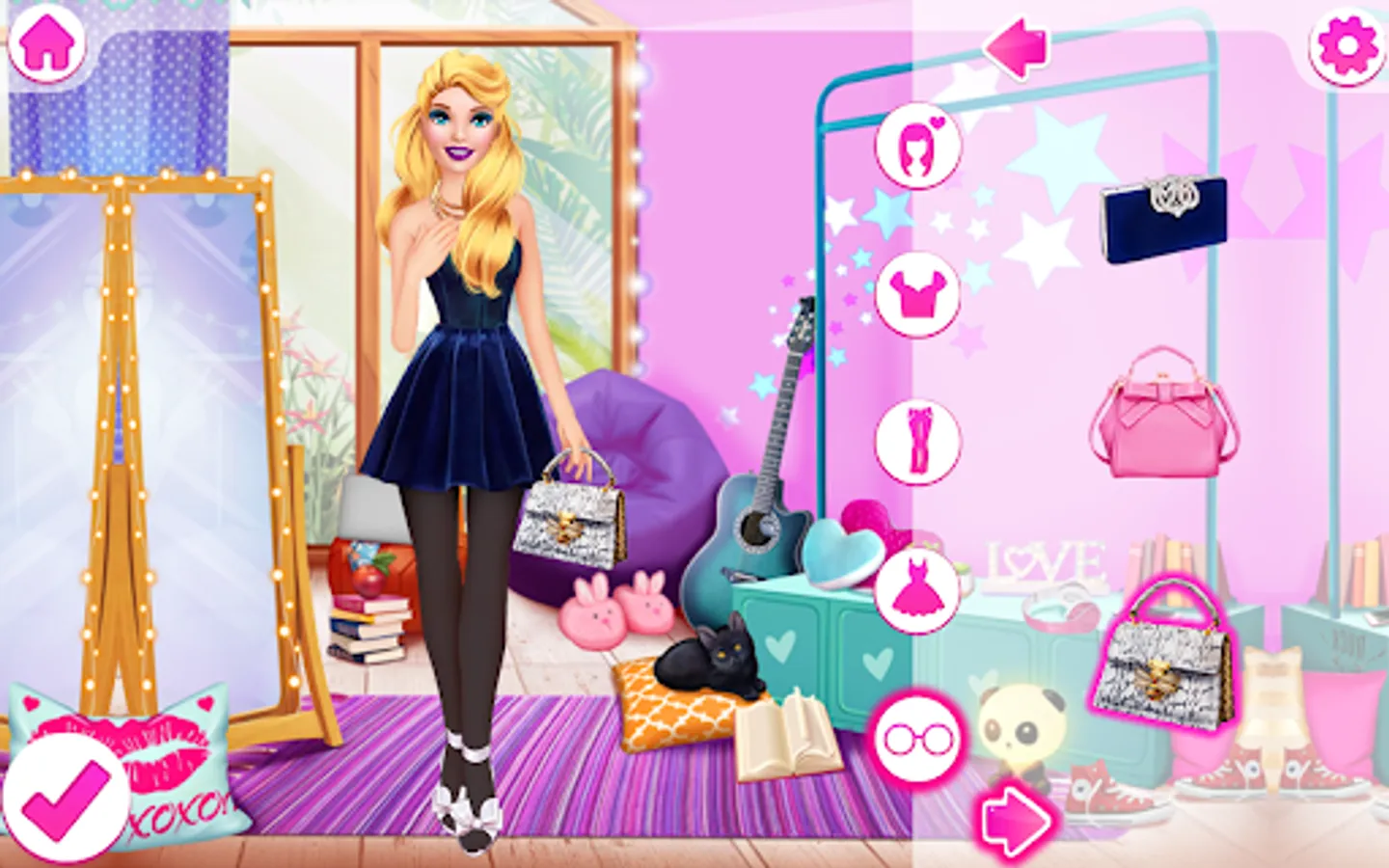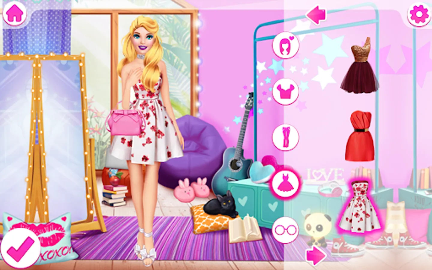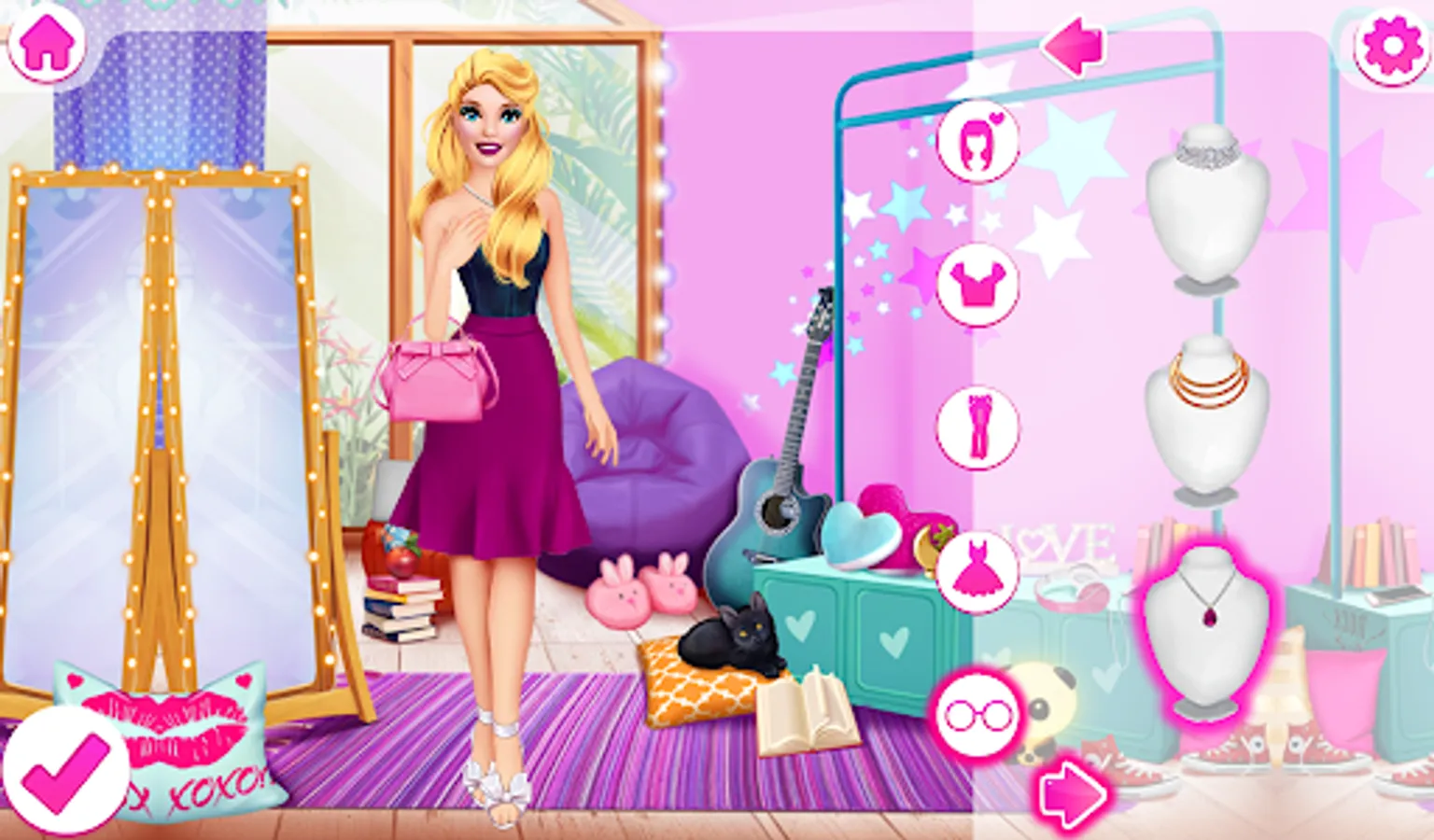Stunning wedding dresses are waiting for you in the dress-up level. Complete a wedding look with jewelry and an elegant handbag. A bouquet of flowers is essential for the bride. Do not forget about the veil, it is no less important!