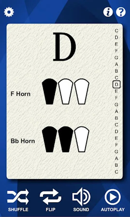 Flashcards are widely used as a learning drill to aid memorization by way of spaced repetition. This app features flashcards to develop note reading on the treble clef, suitable for all FRENCH HORN Players in any style of music.