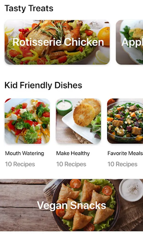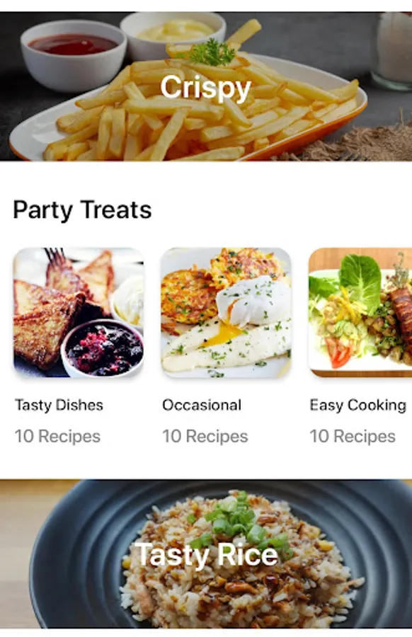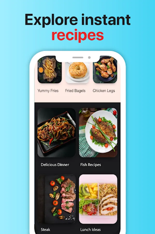 Air fryer Cookbook free recipes include popcorn chicken, sweet potato fry, crispy fish fillets, tortilla chips. We also have air fryer vegan food ideas like fried vegetable recipes, asparagus, apple crisps, broccoli, baked potato. The air fryer app is one of the best for fried foods.