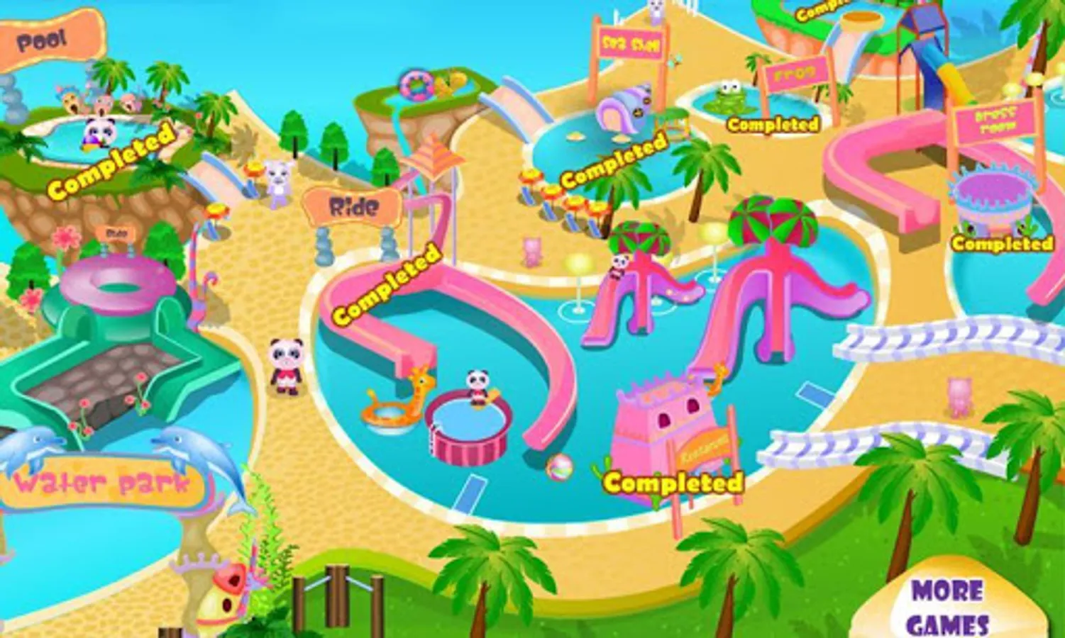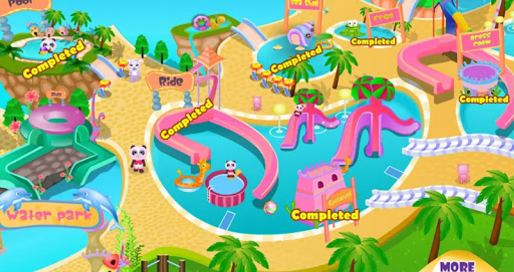 - Super cute design of the waterpark and character