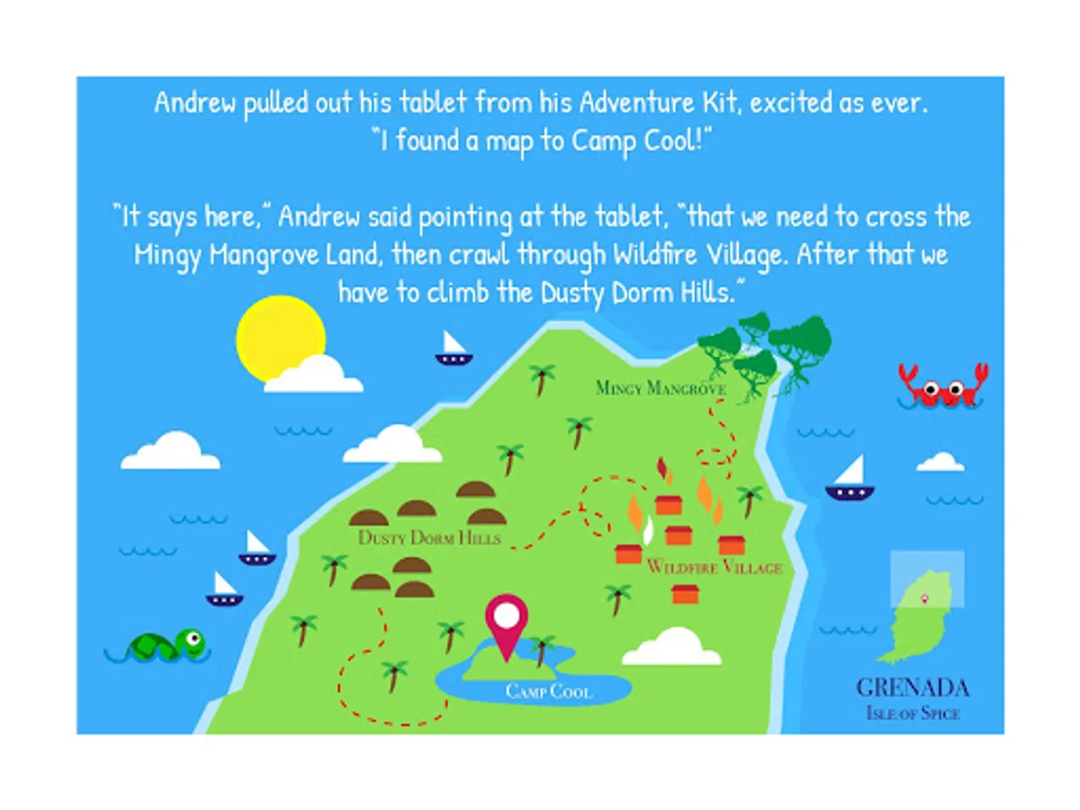 Climate kids Andrew and Jada are on summer vacation. They are experiencing the hottest summer in history. A heat wave has been scorching the city for the last 2 months and doesn’t seem to be going away. Andrew, with his pet crab Crammy, convince Jada and her pet turtle Todd to go on an adventure to find Camp Cool: the coolest village in the country.