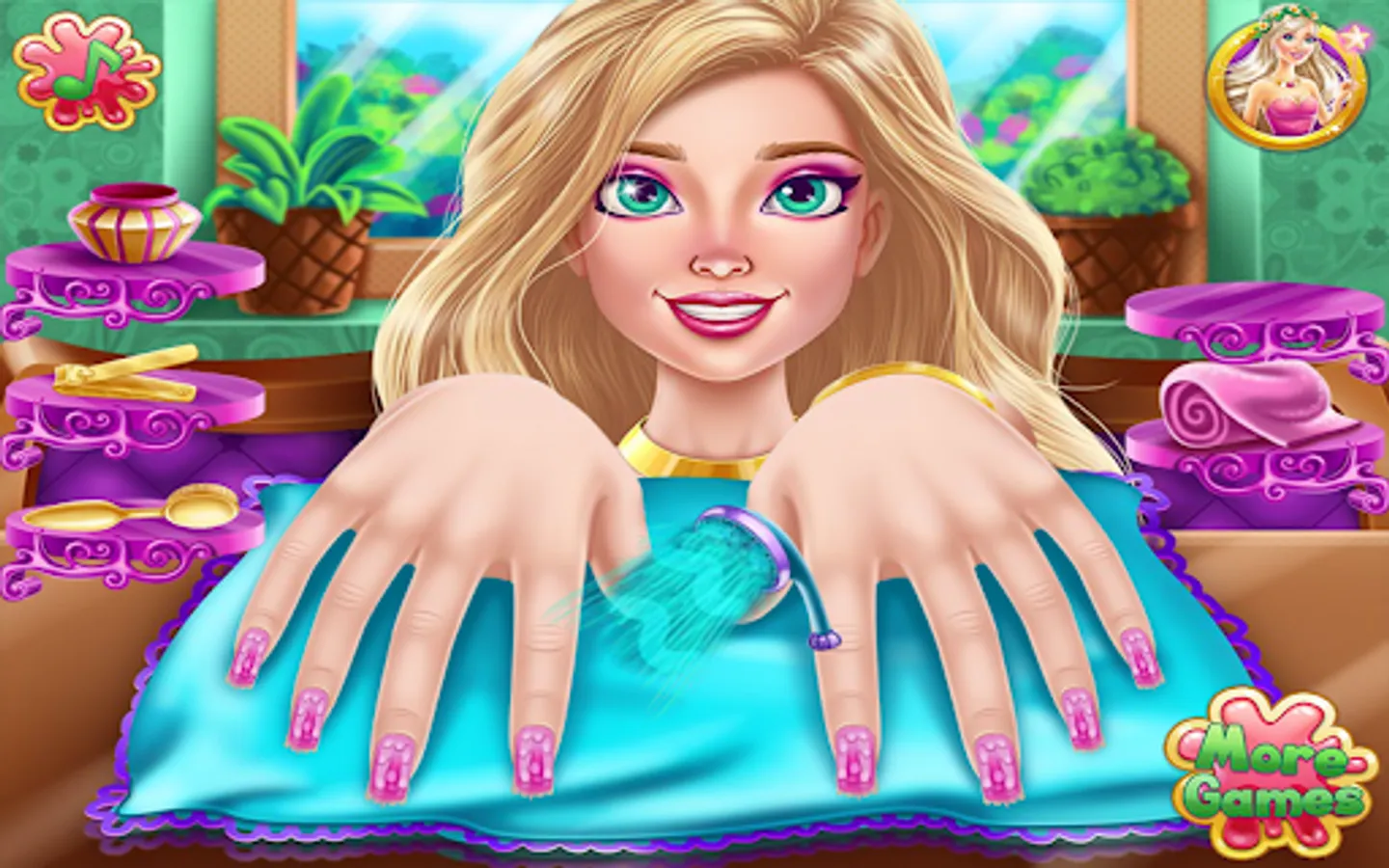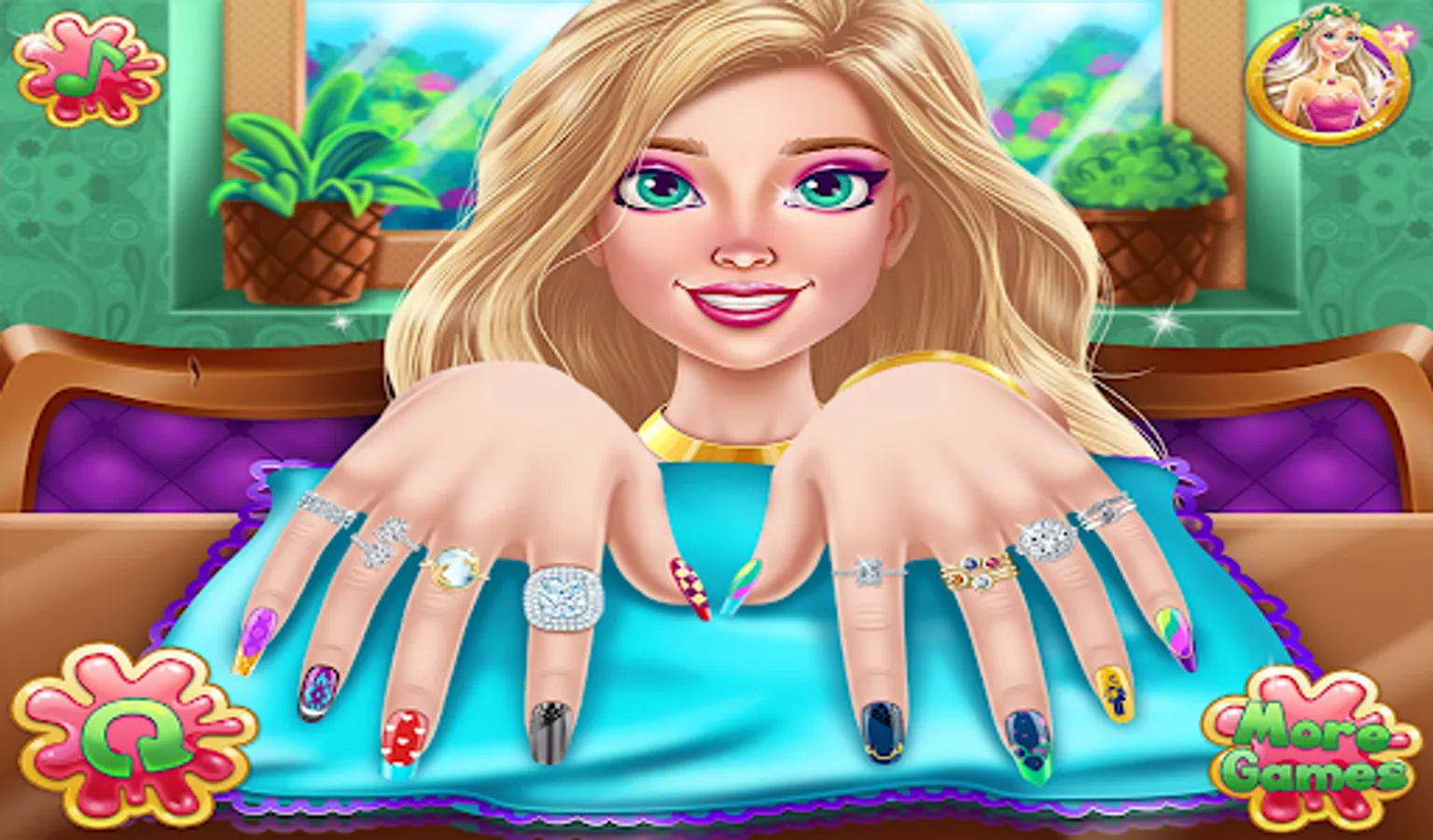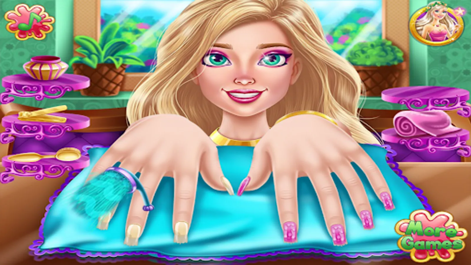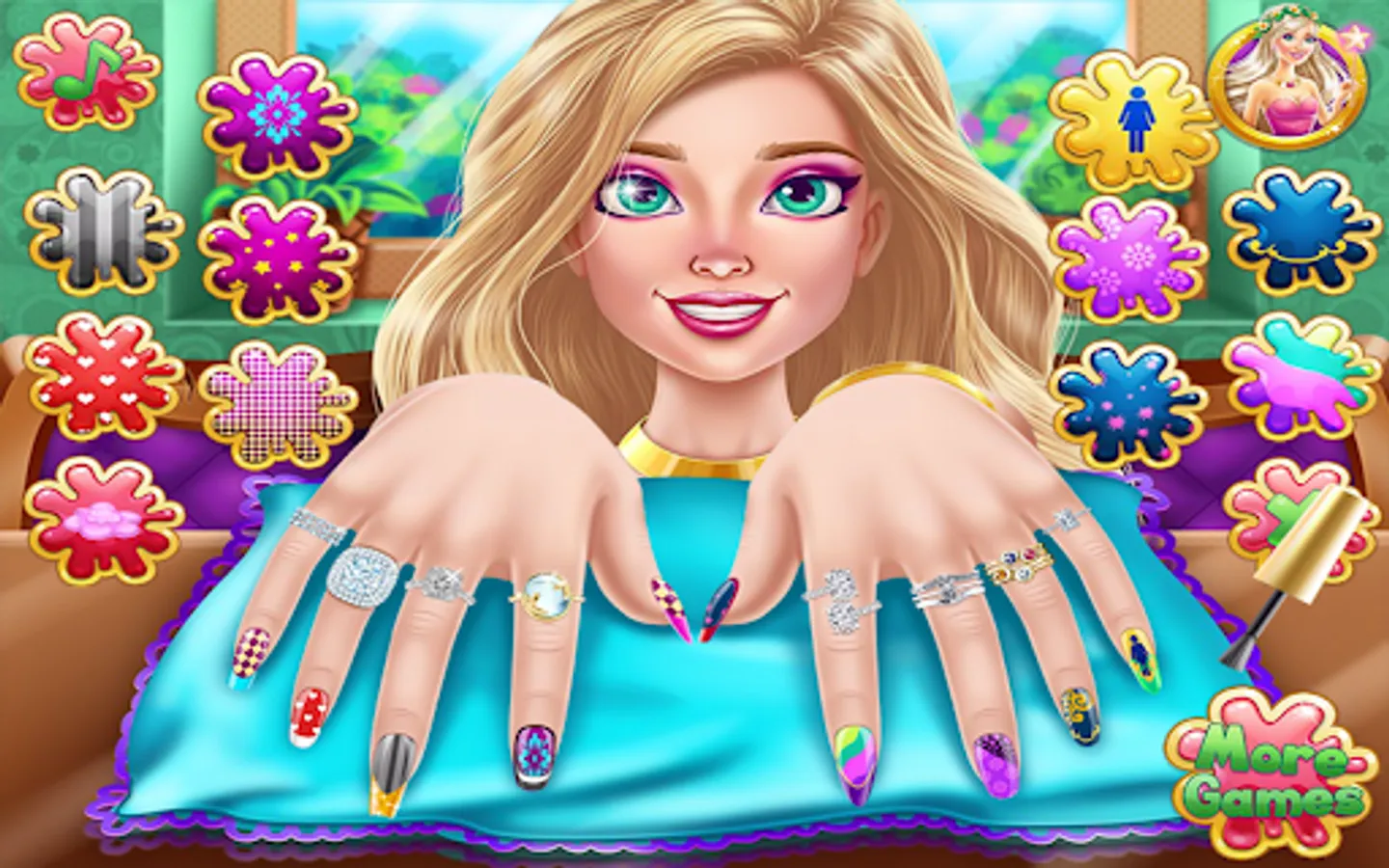 Now design your nails and learn all about nail design salon in this manicure game. Lots of tools that will make your fingers shine in the nail salon girls game to design your nails. Polish and decorate your nails and show off your amazing nail polish. You can paint each nail a different color and shine with this girls' manicure. Stylish nail art makes your hands more adorable in nail salon design games for girls. Paint the nails with a variety of nail polish colors in this beautiful nail salon girls game. Nail art game with unique and beautiful designs.
