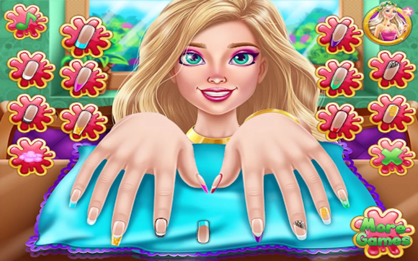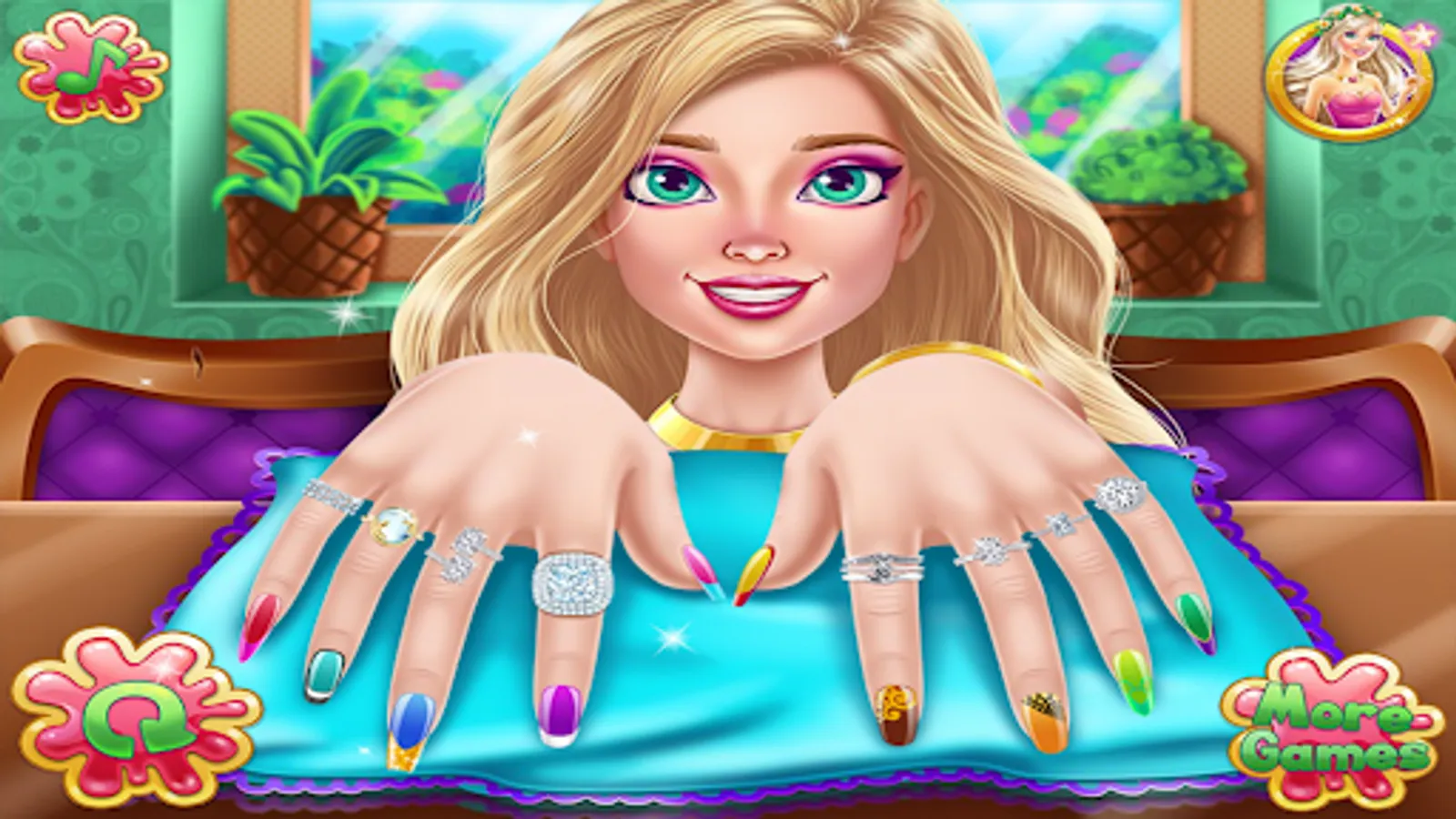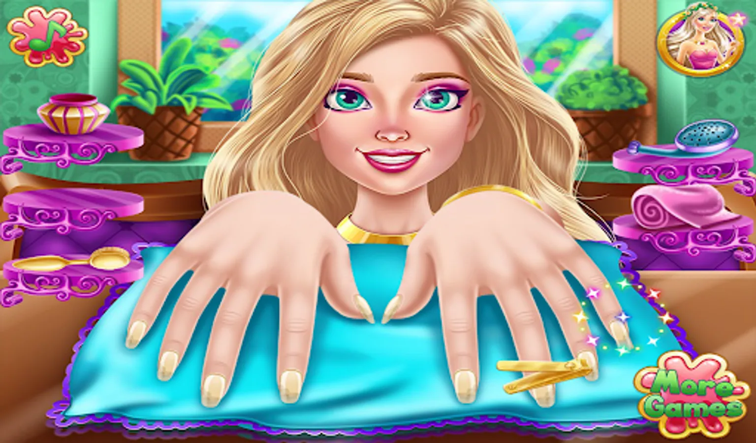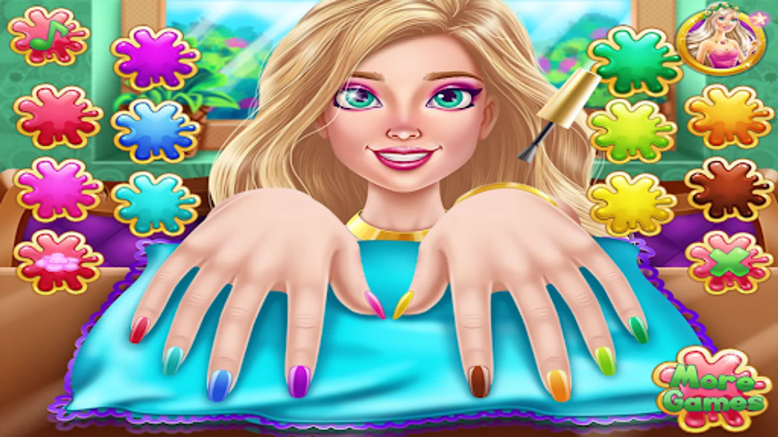 Now design your nails and learn all about nail design salon in this manicure game. Lots of tools that will make your fingers shine in the nail salon girls game to design your nails. Polish and decorate your nails and show off your amazing nail polish. You can paint each nail a different color and shine with this girls' manicure. Stylish nail art makes your hands more adorable in nail salon design games for girls. Paint the nails with a variety of nail polish colors in this beautiful nail salon girls game. Nail art game with unique and beautiful designs.