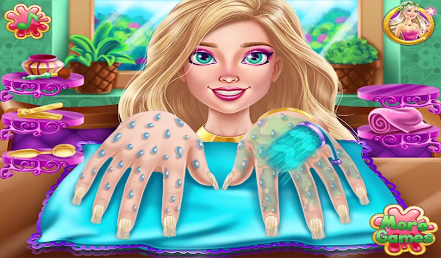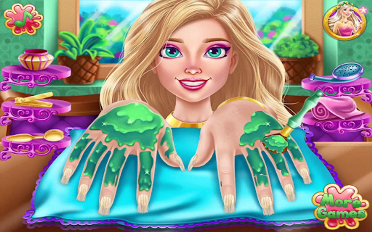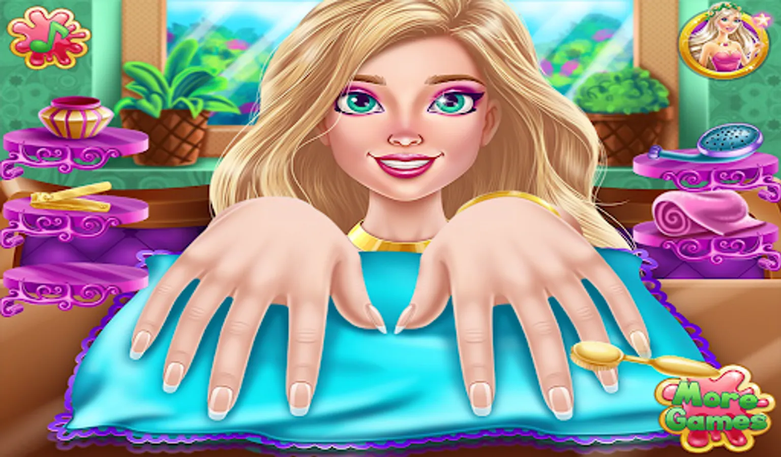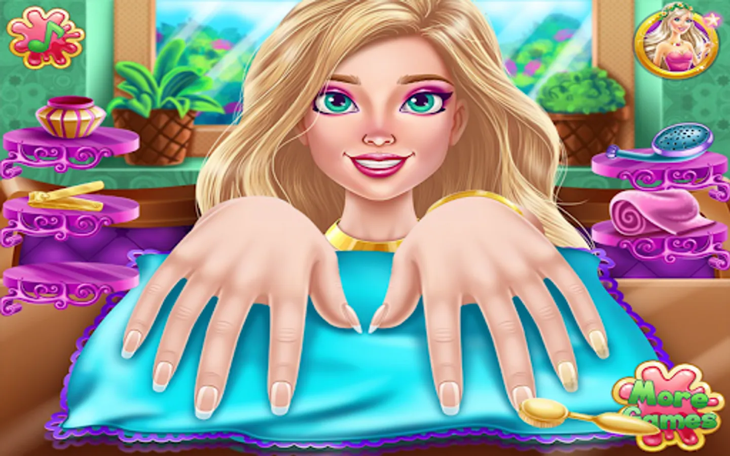 Now design your nails and learn all about nail design salon in this manicure game. Lots of tools that will make your fingers shine in the nail salon girls game to design your nails. Polish and decorate your nails and show off your amazing nail polish. You can paint each nail a different color and shine with this girls' manicure. Stylish nail art makes your hands more adorable in nail salon design games for girls. Paint the nails with a variety of nail polish colors in this beautiful nail salon girls game. Nail art game with unique and beautiful designs.