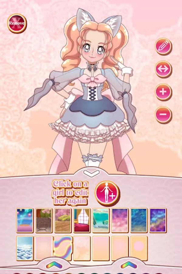 Dress up your kawaii ladies in Japanese lolita inspired fashions. Decorate with bows, jewelry and even drag and drop glitter! Add animal ears and tails to create neko characters, like catgirls or foxes. At the end, add MORE characters to your scene to put together a powerful force of magical warriors!