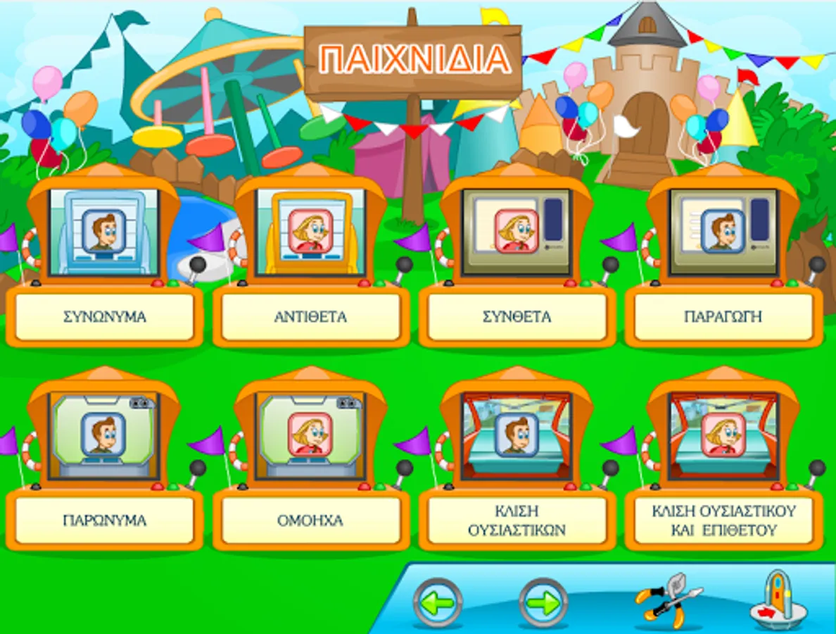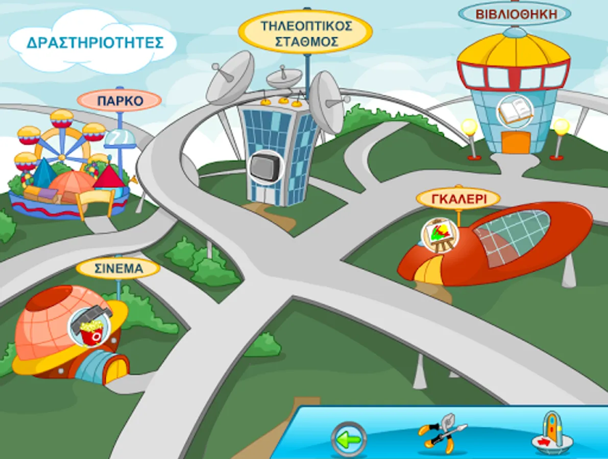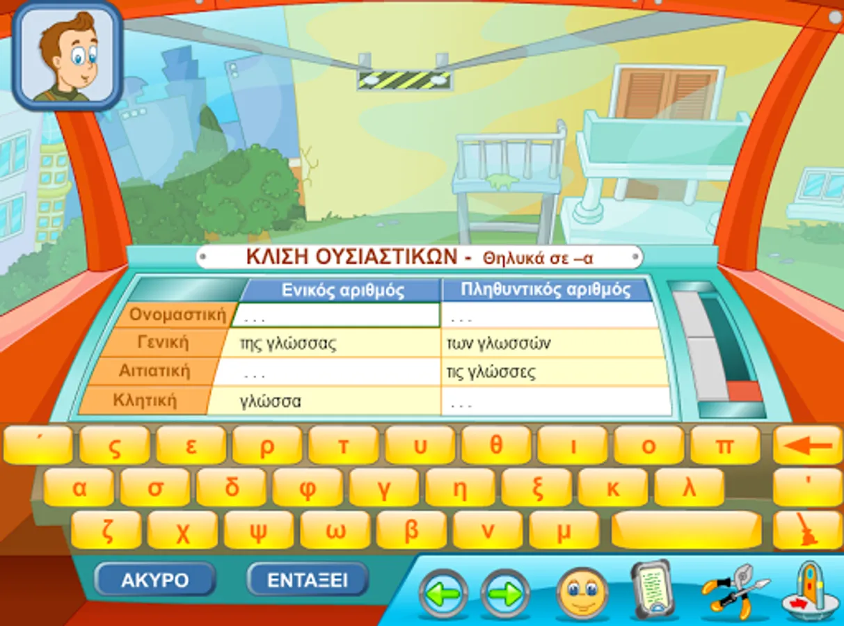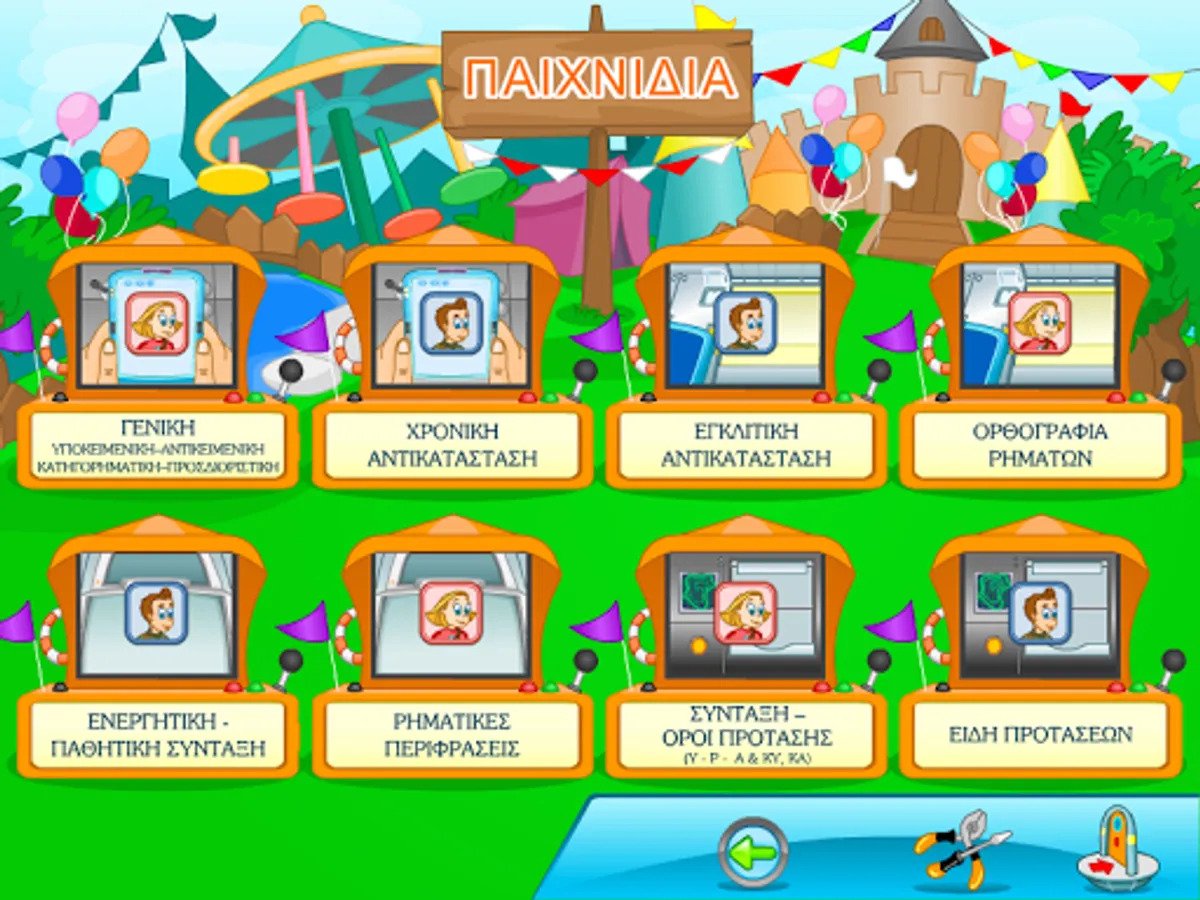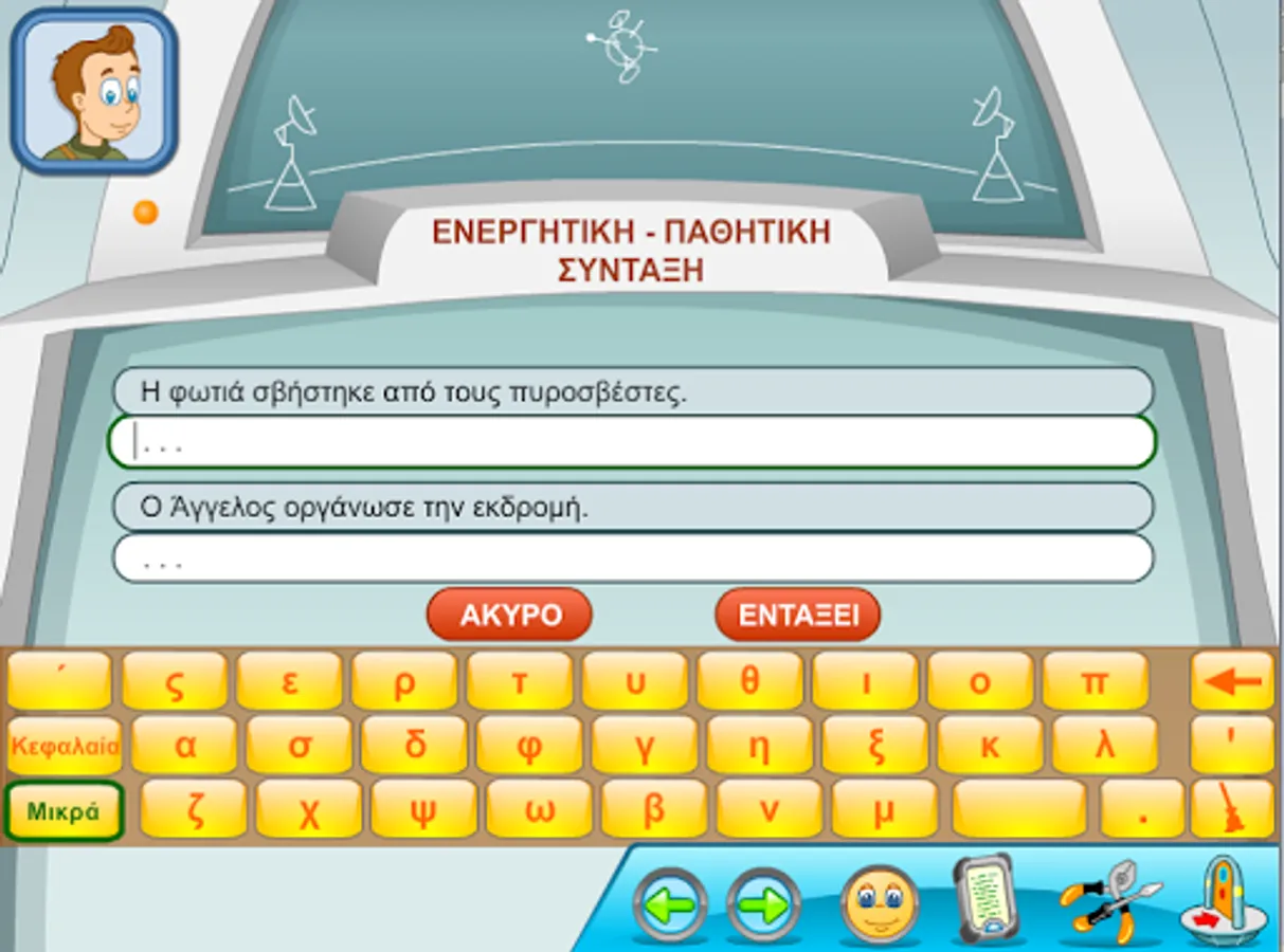 It is an advanced multimedia educational software that successfully combines education with entertainment. Through a rich interactive environment, it helps to familiarize children with Elementary and Fifth grade language classes, covering the following sections: