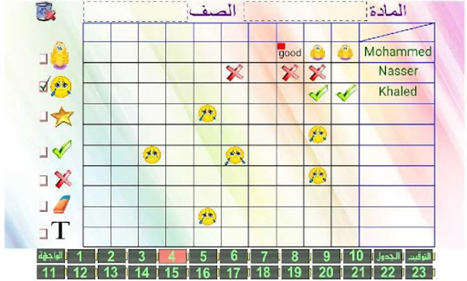 The program contains 23 pages can write the names of ten students per page