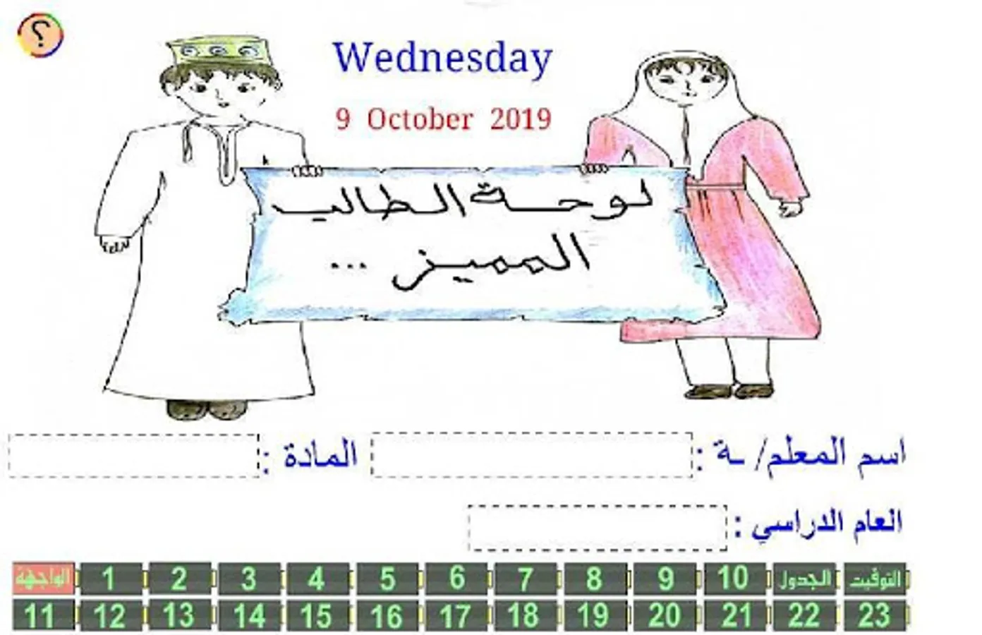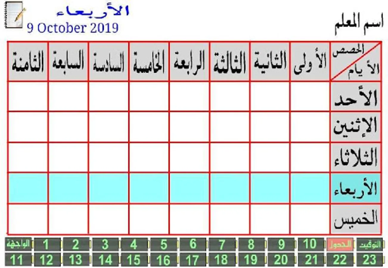 It also contains a schedule of classes so that the teacher can see the daily schedule