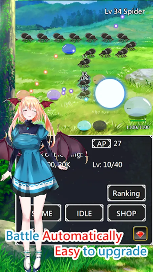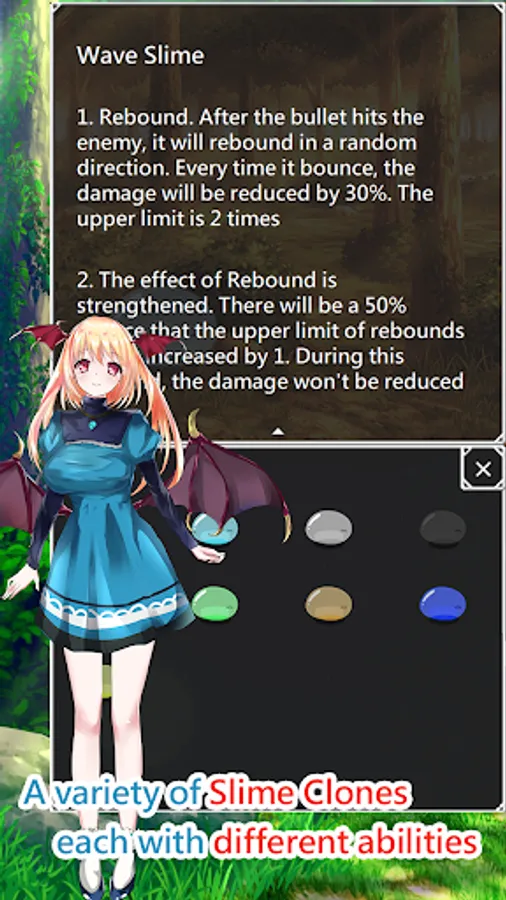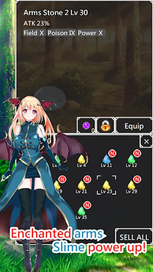 As a slime, you have powerful skills - God's blessing and Slime Clones. Also, there are different enchantment of arms, use them to defeat powerful enemies!