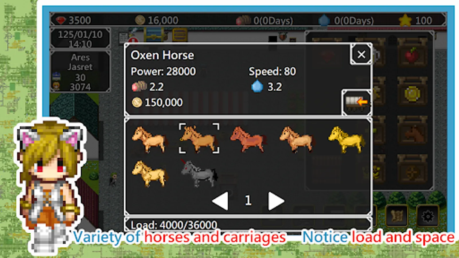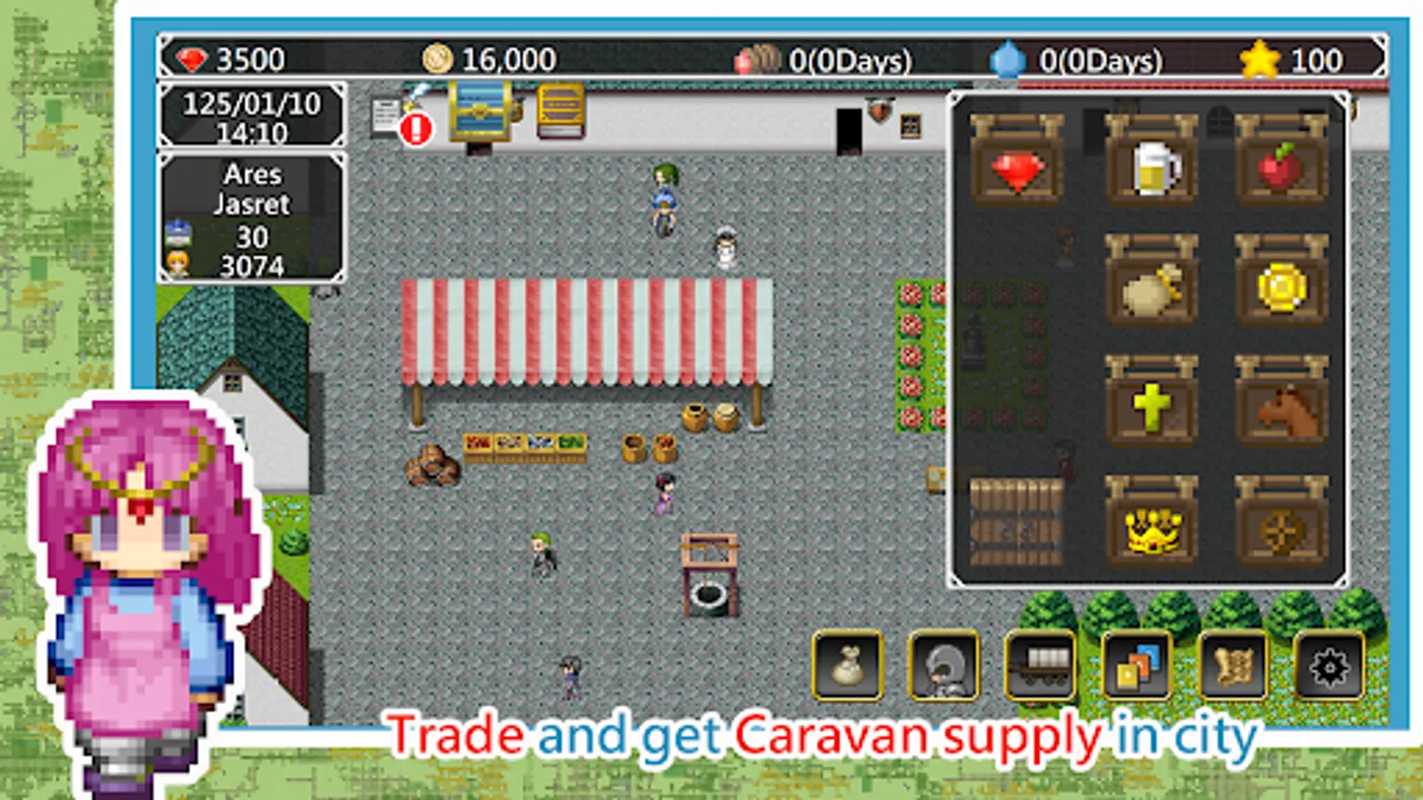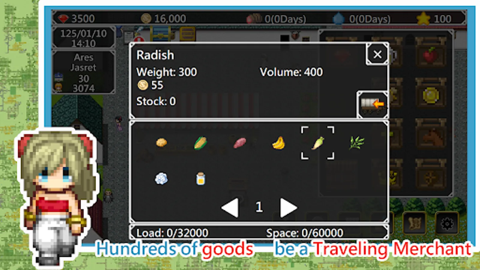A difficult RPG game, made in retro style. Being a traveling merchant, you travel between cities in a Isekai world, trade various goods to make money. protect your caravan from monster, and find the legendary food Ingredients out! Don't miss this game if you like Uncharted Waters