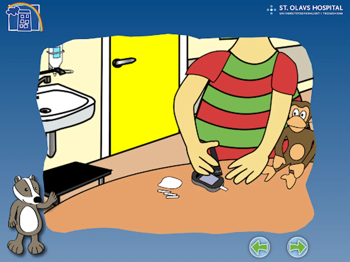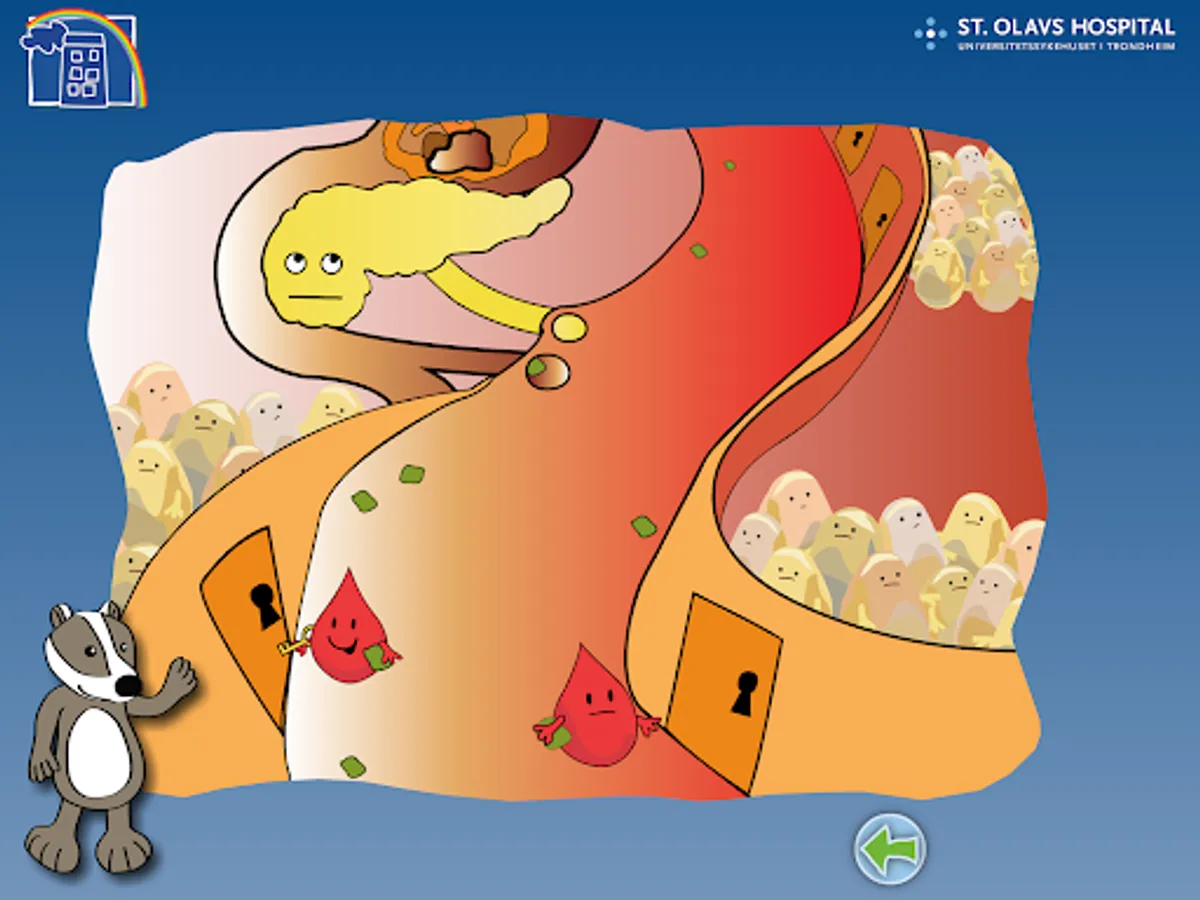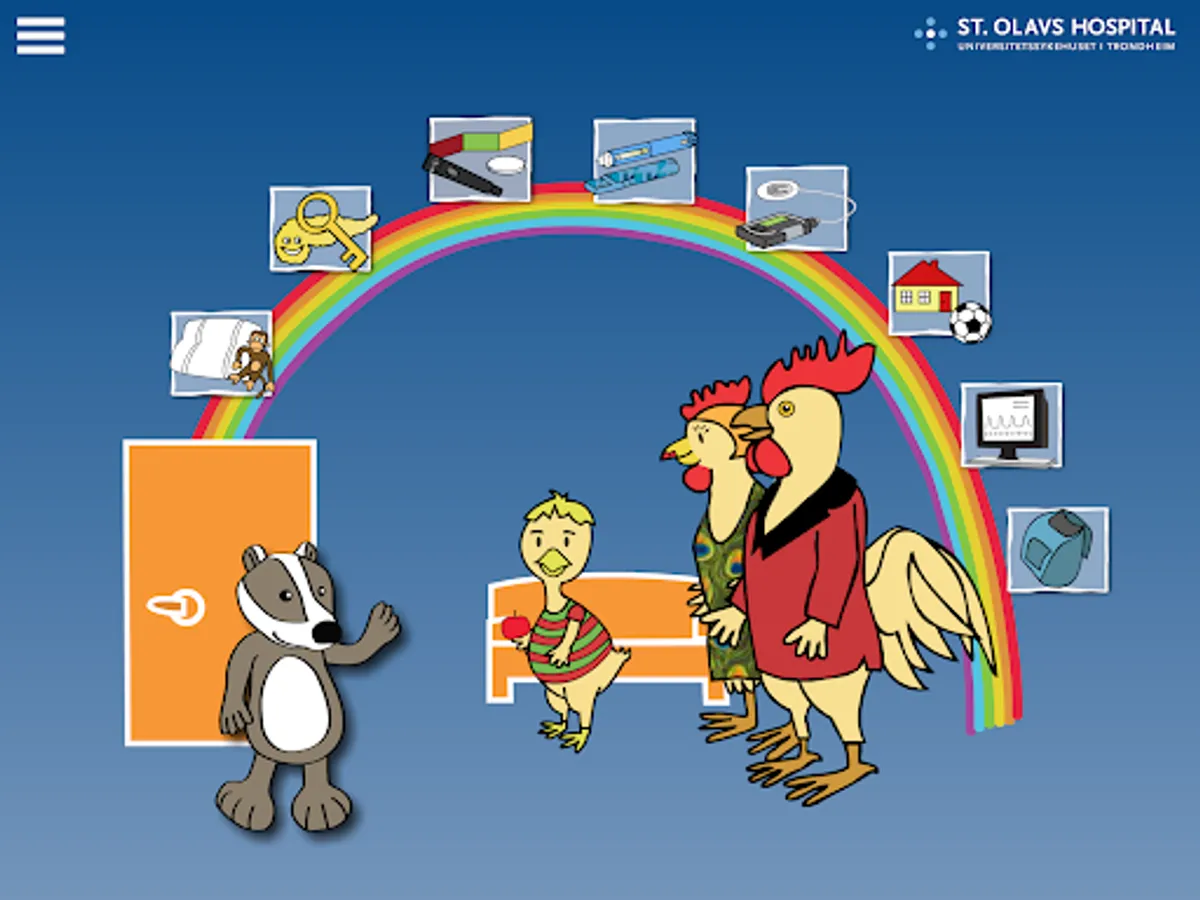 The app "Gusse-Diabetes type 1" is an introduction to a patient course for the youngest children, their family and friends. The purpose is to prepare and reassure children who have little experience with the equipment and concepts they encounter in the hospital.