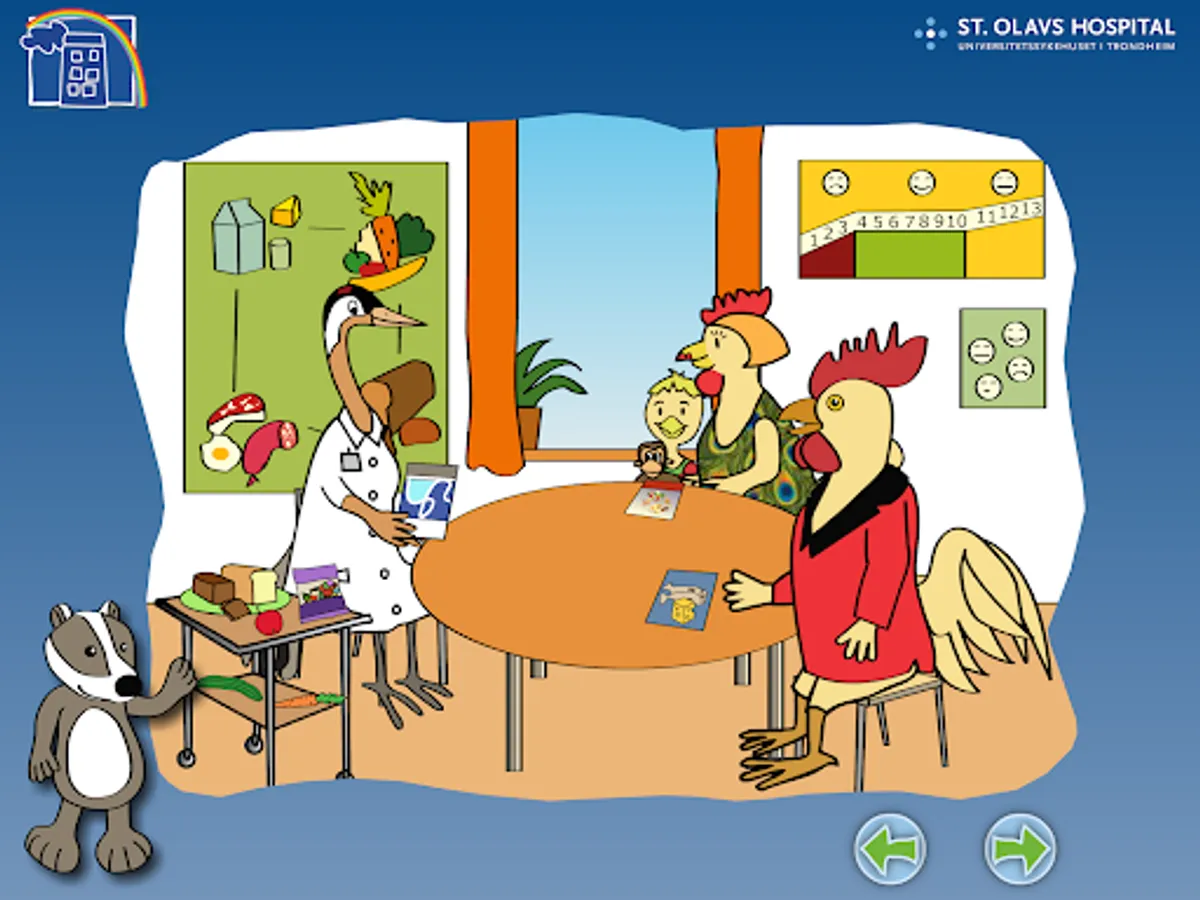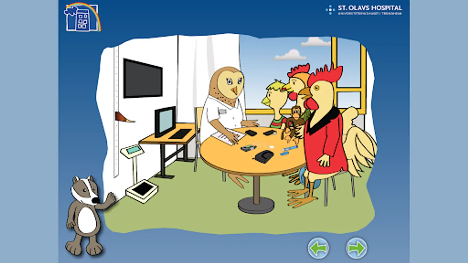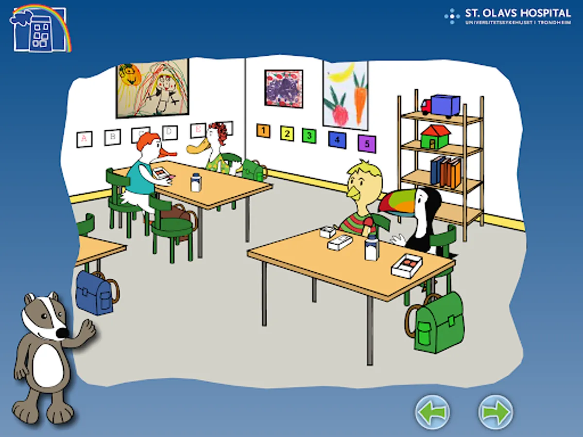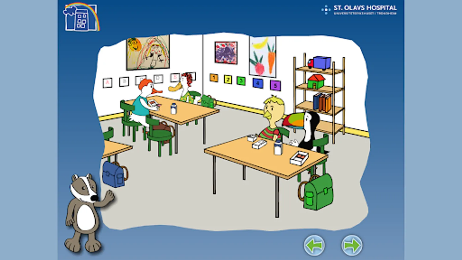 Children in this age group learn and experience through play and concrete information. Hospitalized children can quickly become overwhelmed by a lot of information. That is why "Gusse - Diabetes type 1" is built up of short sequences suitable for younger children.