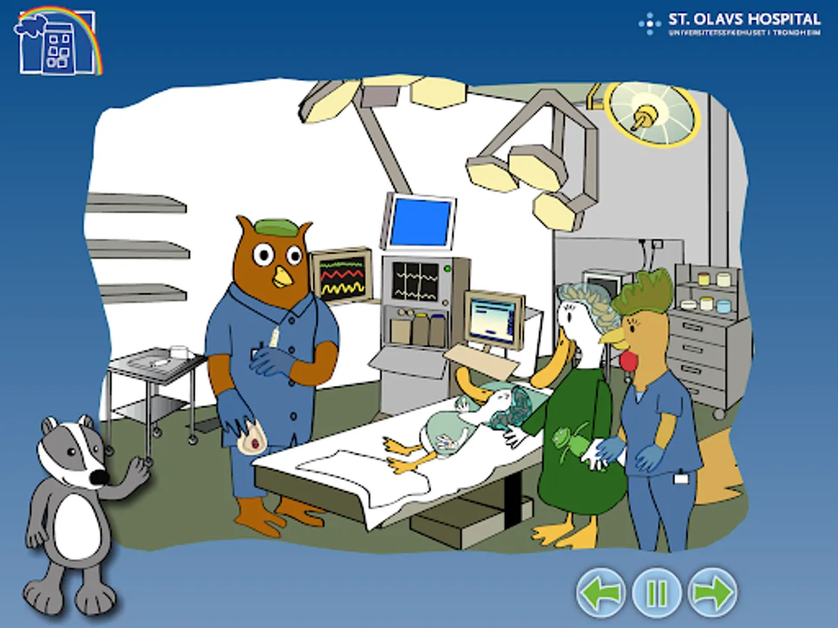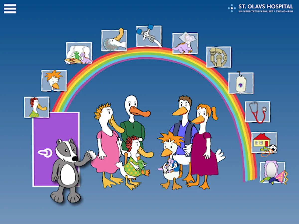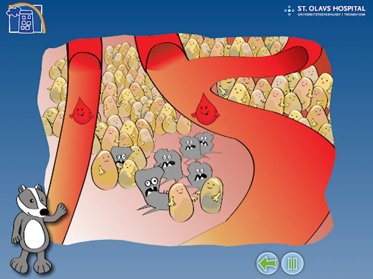 The app "Gusse - Cancer" with Norwegian speech was developed in collaboration with Else B. Stålen and the cancer department at the Children's and Youth Clinic, St. Olav's Hospital, University Hospital in Trondheim.