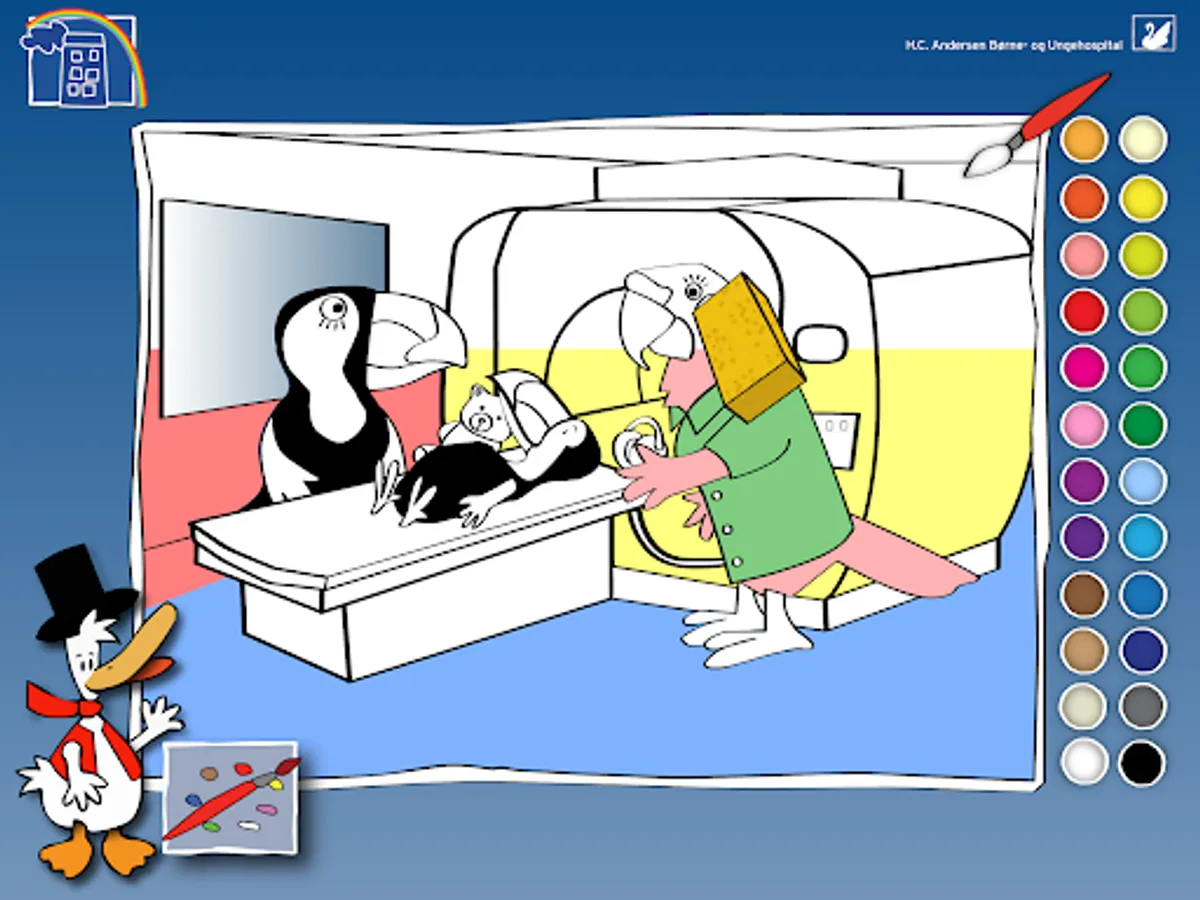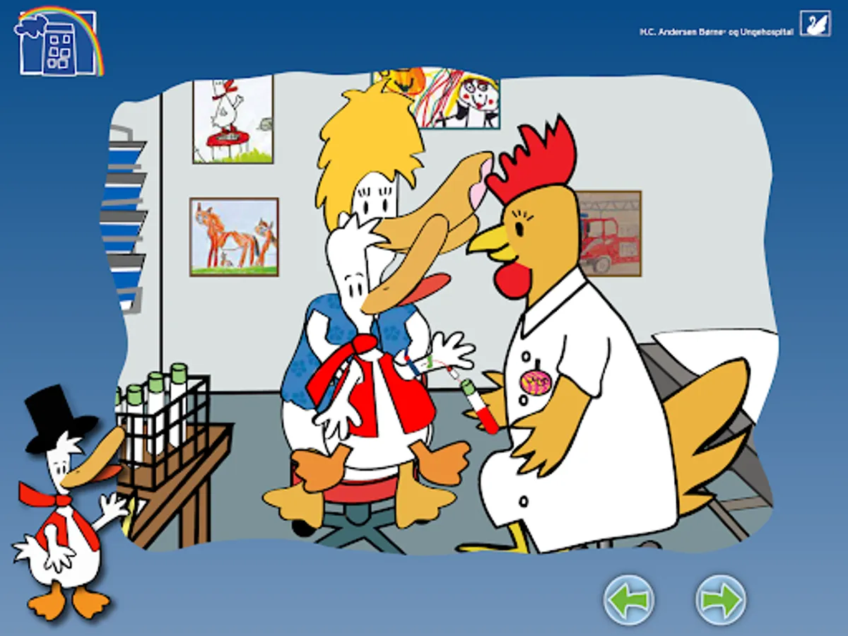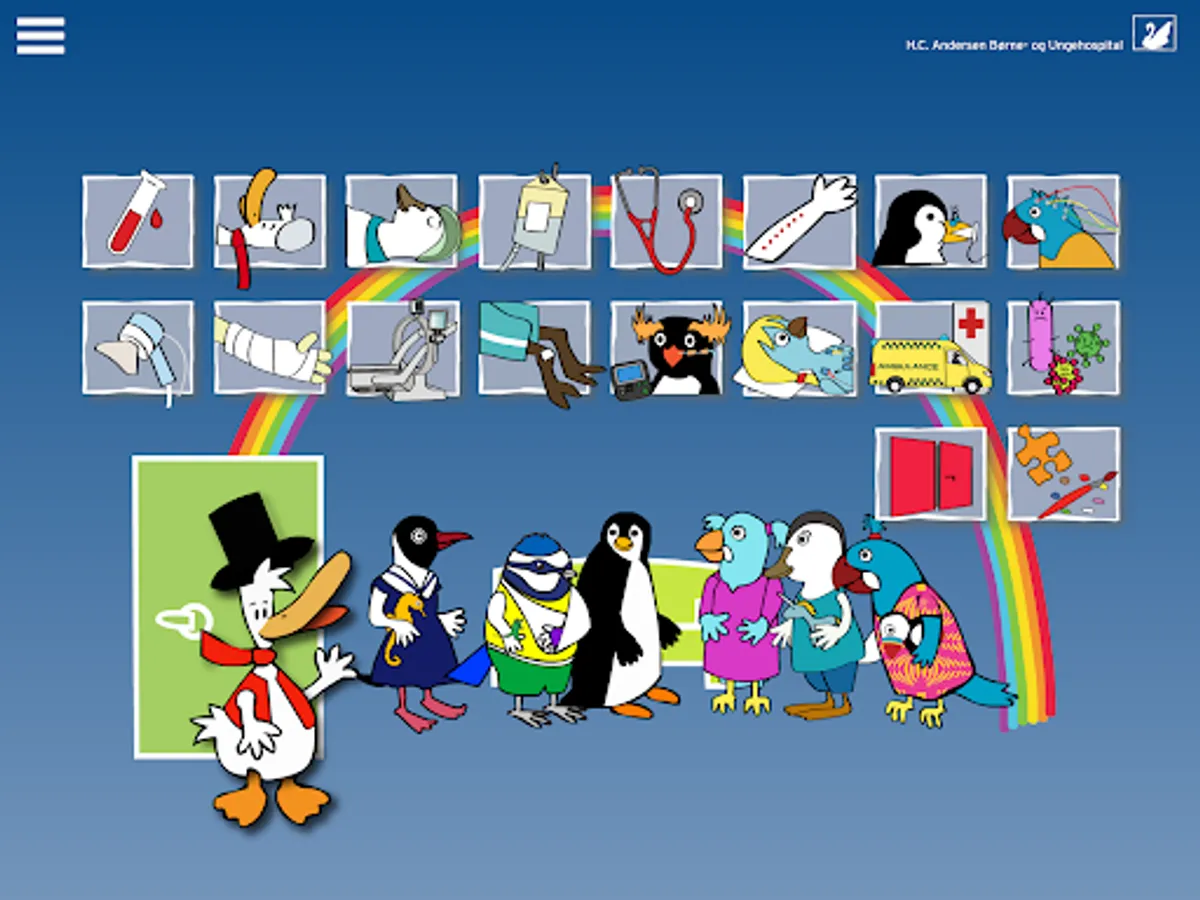 "HC And - På hospitalet" contains a wide selection of general preliminary examinations, which are used in connection with investigation and treatment. In addition, a section on "daily life" when you are admitted to a hospital. The information is spoken - by a child's voice - and animation in the genre "Learning through play with tablet/mobile phone/touch screen".