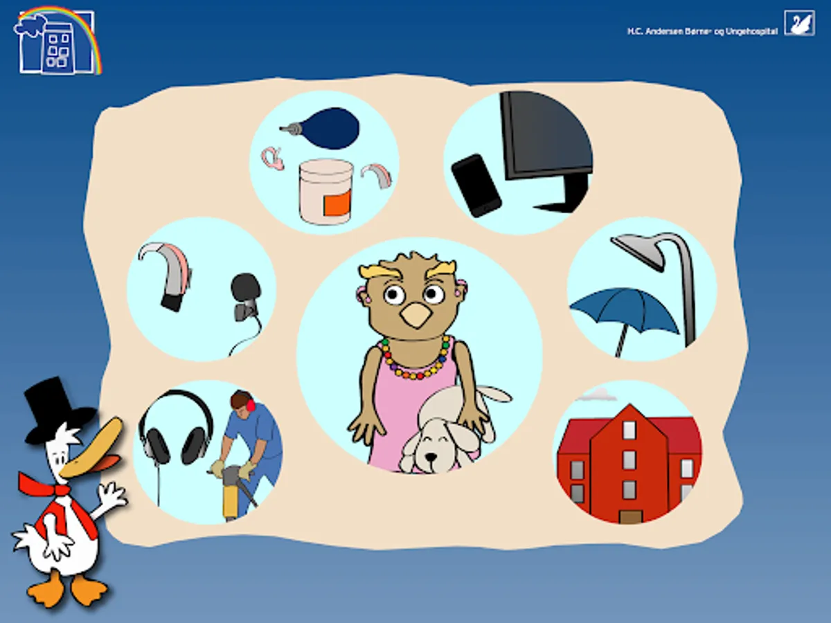 "HC And - Hearing loss" has been developed in collaboration between the Hearing Clinic, H.C. Andersen Children and Youth Hospital, Odense University Hospital, hospitalized children and their families and 10:30 Visual Communication.