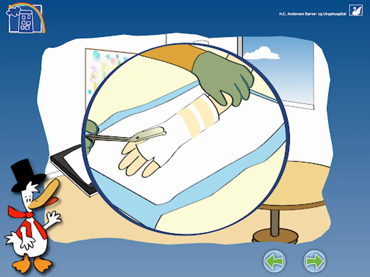 "HC And - Gypsum and K-thread" has been developed in collaboration between the Department of Orthopedic Surgery, H.C. Andersen Children and Youth Hospital, Odense University Hospital, children and their families and 10:30 Visual Communication.