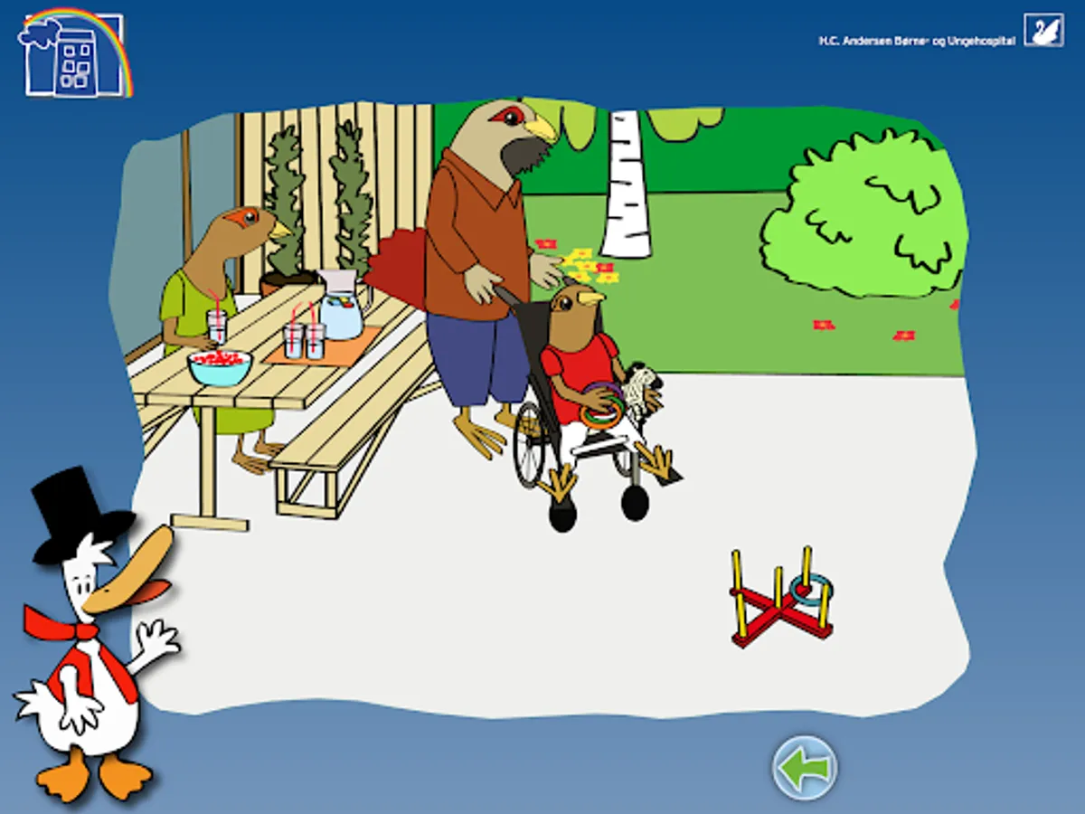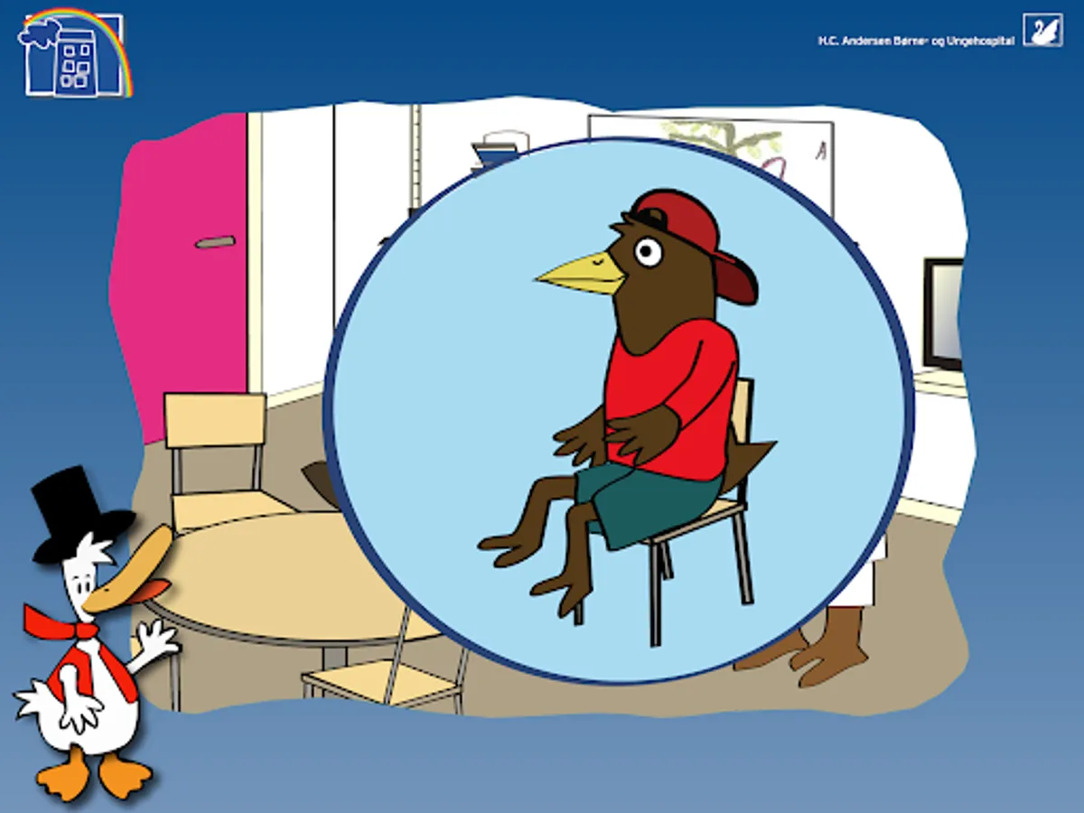 Children in this age group learn and recognize through play and concrete information. Hospitalized children can quickly be "filled up" with a lot of information. Therefore, HC And is built up of short sequences at child's height, so that "newbies" can start here.